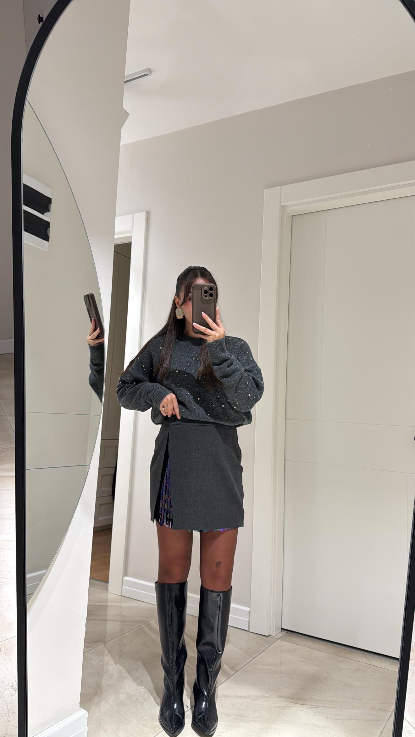 Antrasit Dağınık Taşlı Triko Kazak