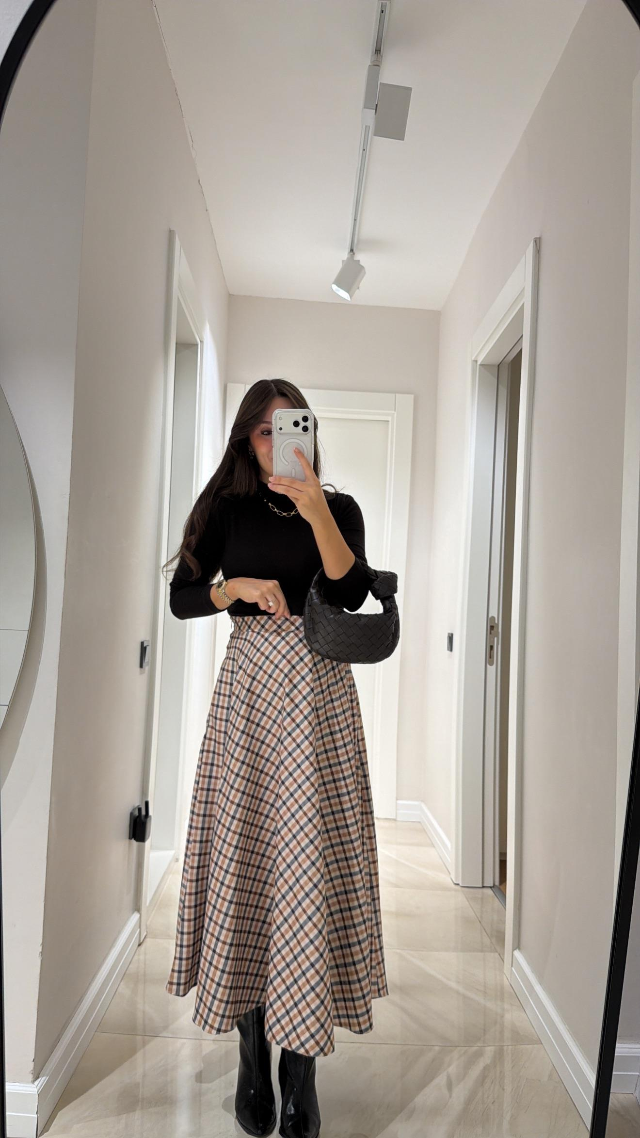Boy 160 cm  Ekoseli , Yandan Fermuarlı , Süet , Midi Boy