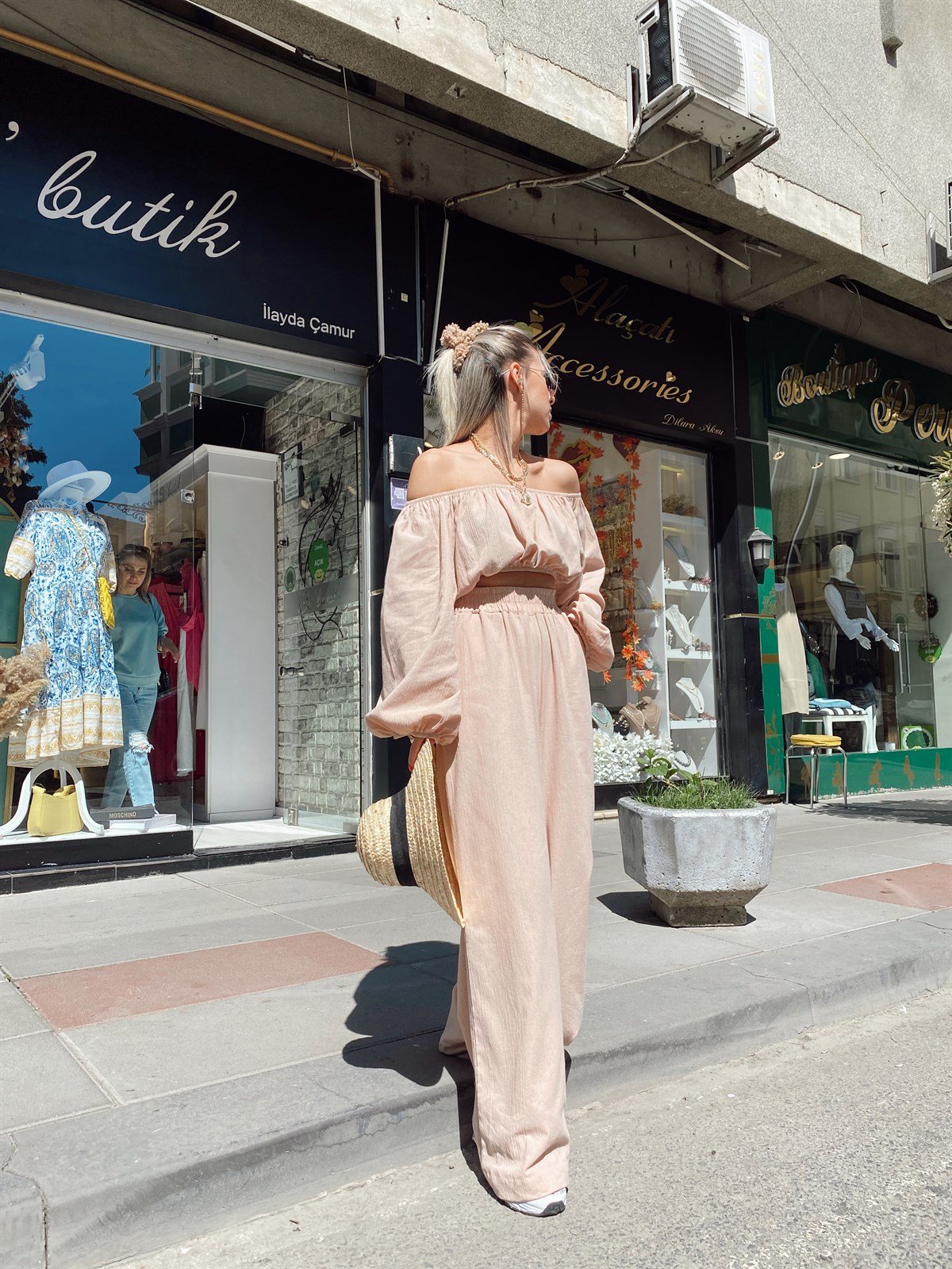 Bej Madonna Yaka Keten Takım