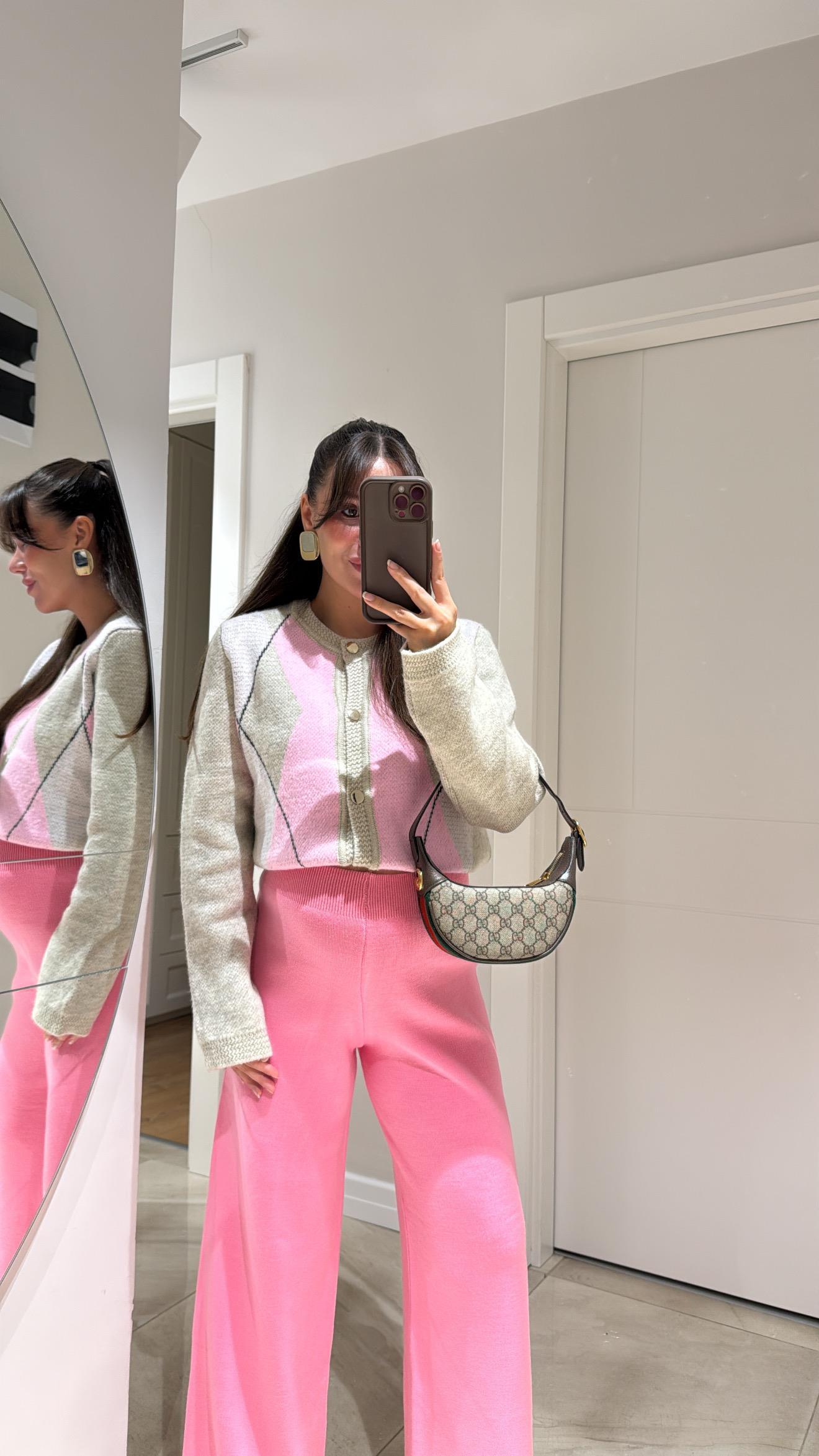 Pembe Triko Pantolon Gold Kare Silver Küpe