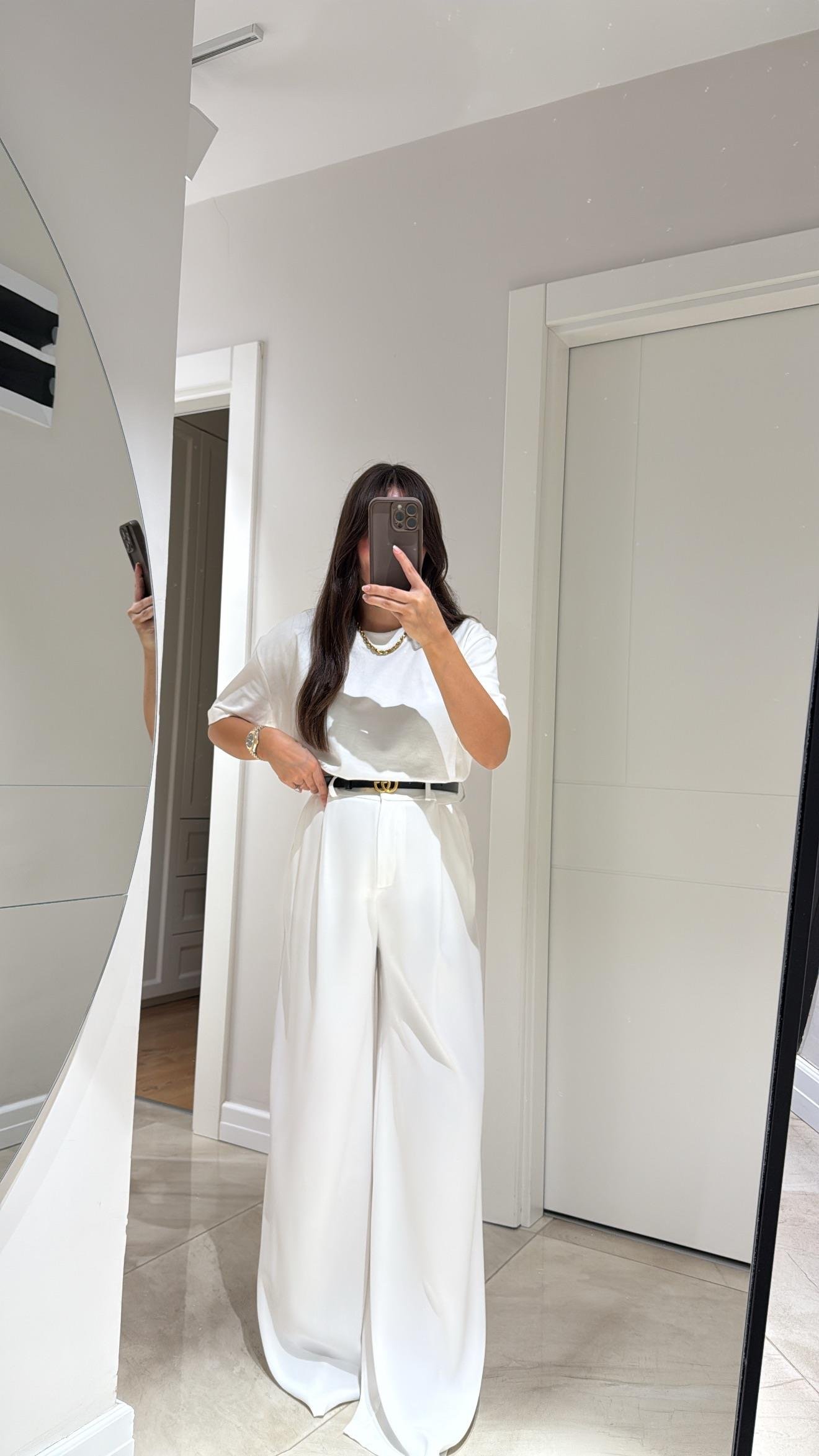 Beyaz Önü Pensli Premium Palazzo Pantolon