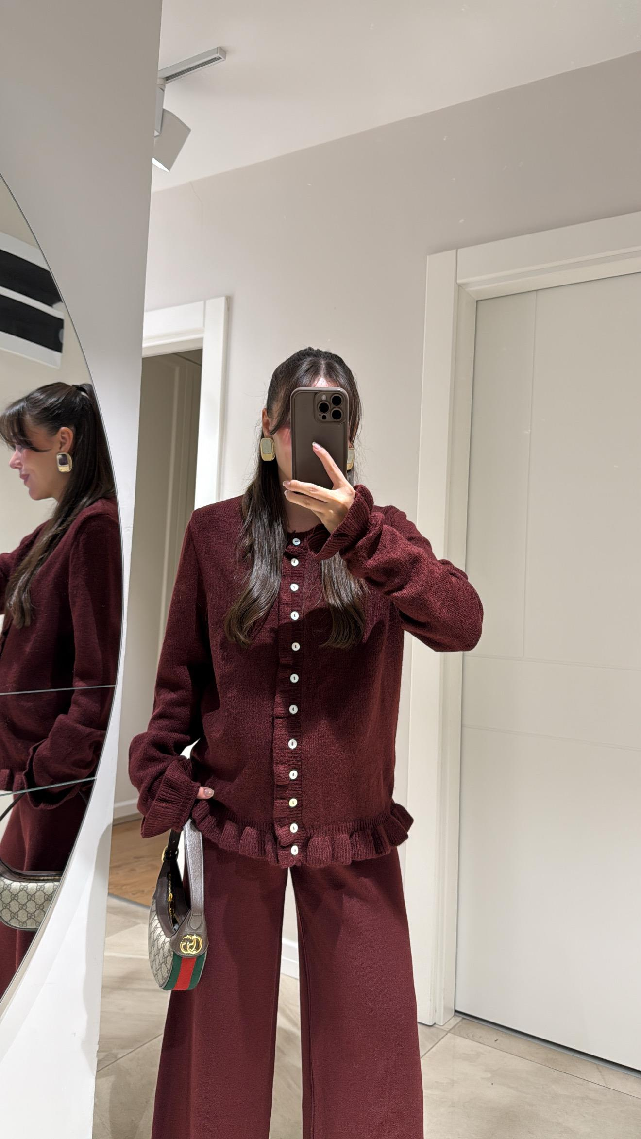 Bordo Fırfırlı Triko Hırka (Bhrk308)