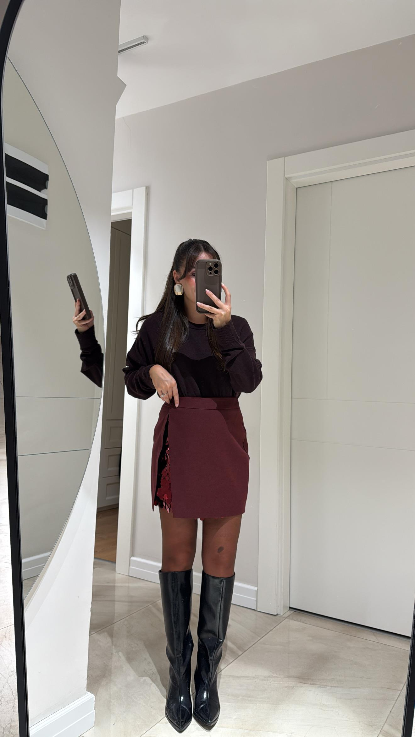 Bordo Payet Detaylı Mini Etek (Betk337)