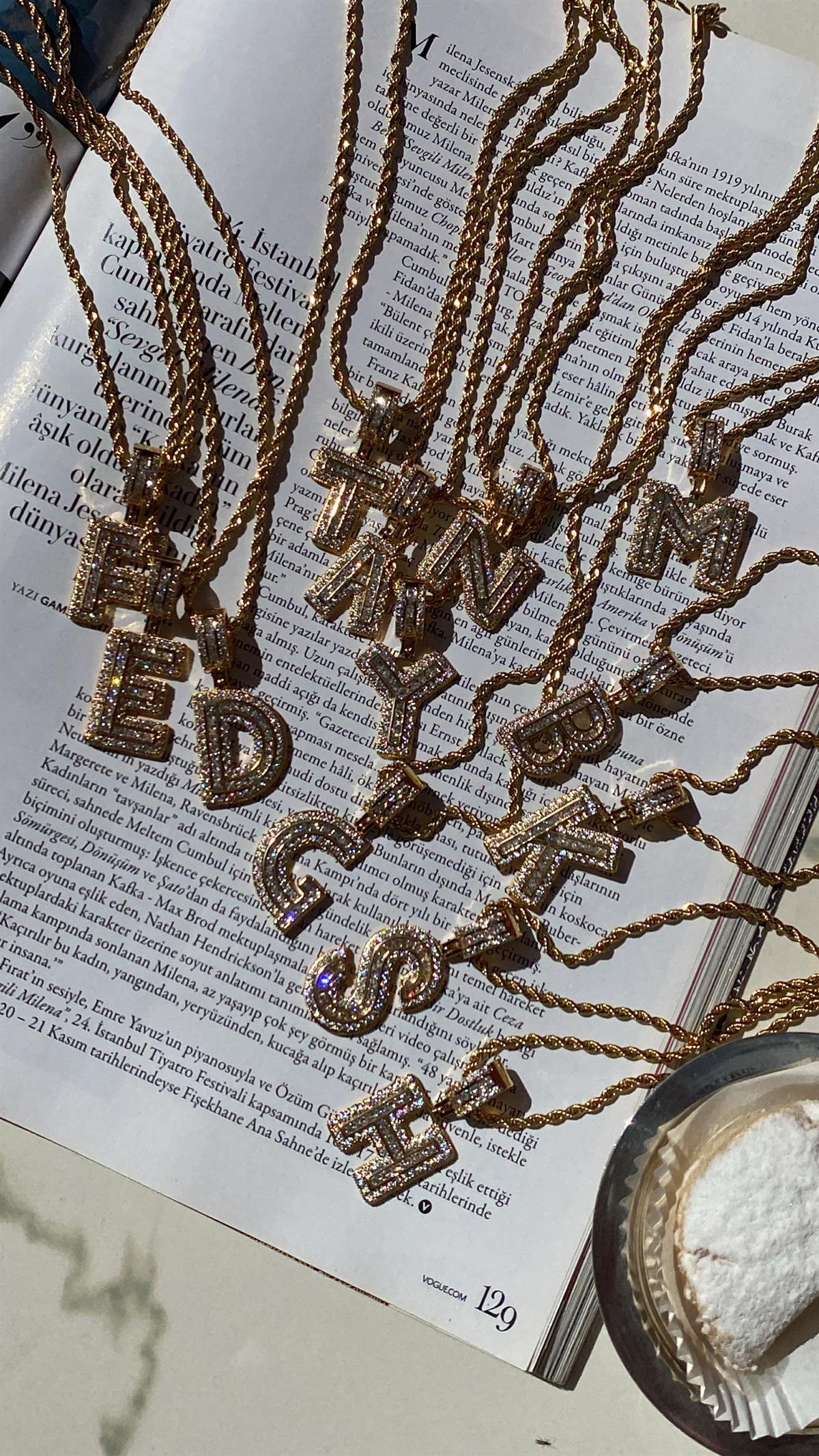 Gold Zirkon Taşlı Harfli Özel Seri Kolye