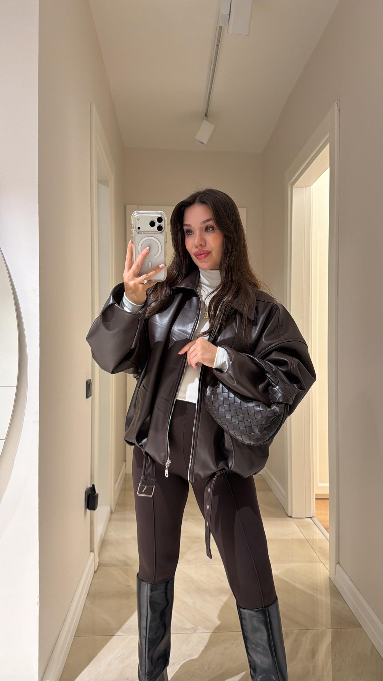 Acı Kahve Bel Kemerli Bomber Deri Ceket