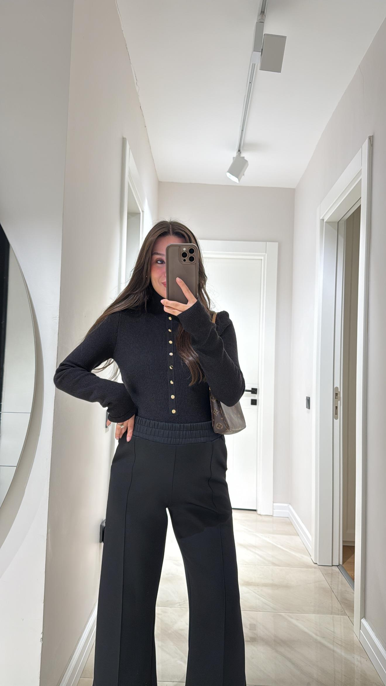 Siyah Ön Dikiş Detaylı Bilek Boy Pantolon