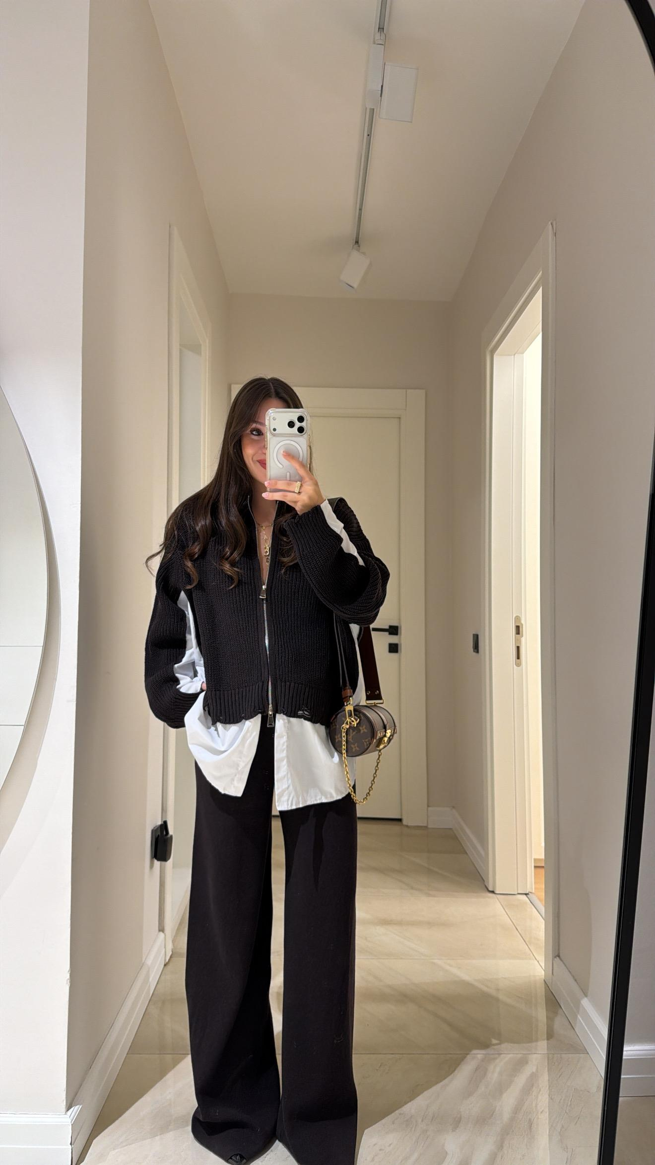 Acı Kahve Gömlek Detaylı Triko Pantolon Takım
