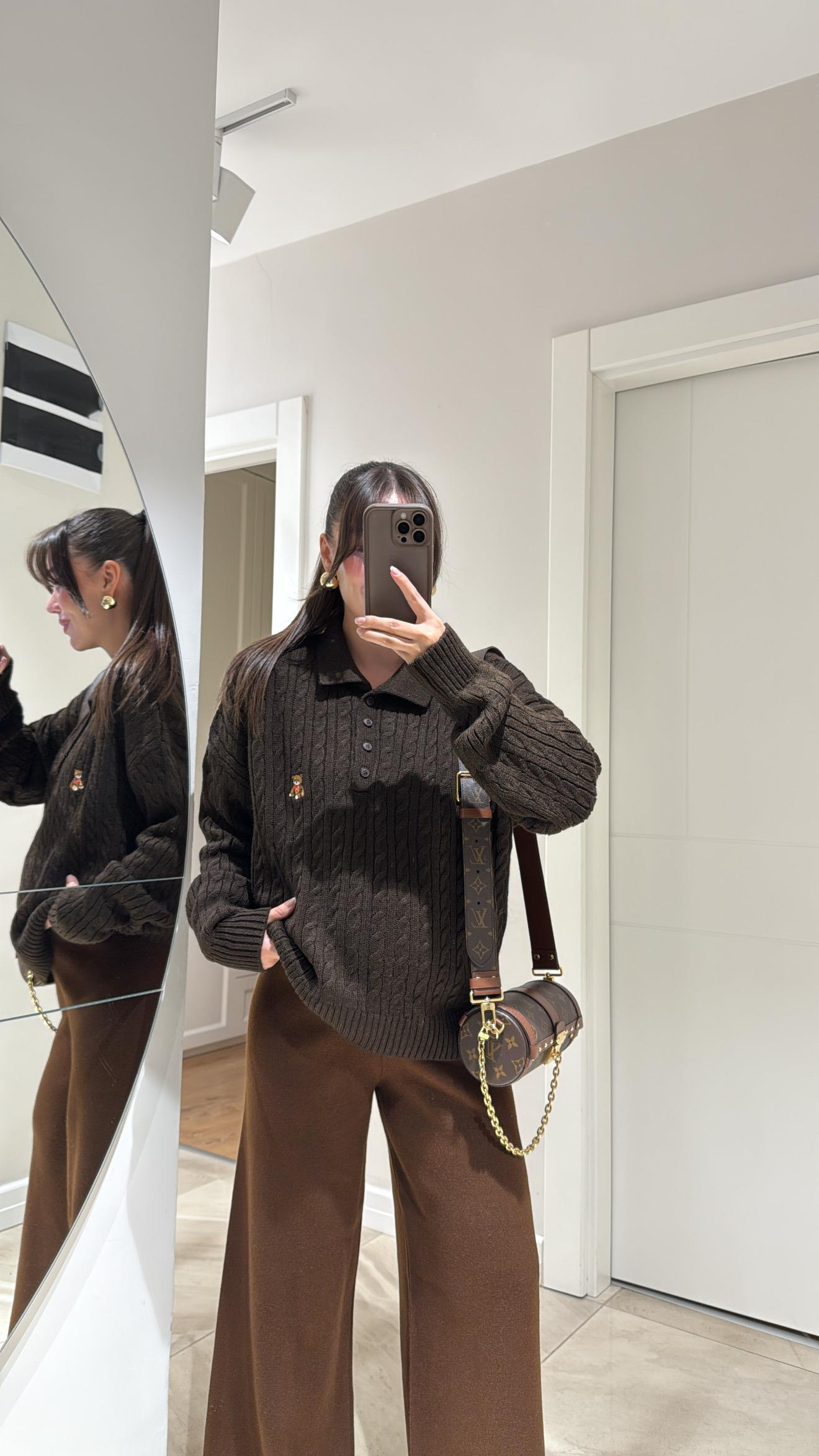 Acı Kahve Polo Yaka Ayıcık Nakışlı Kazak (Bkzk776)