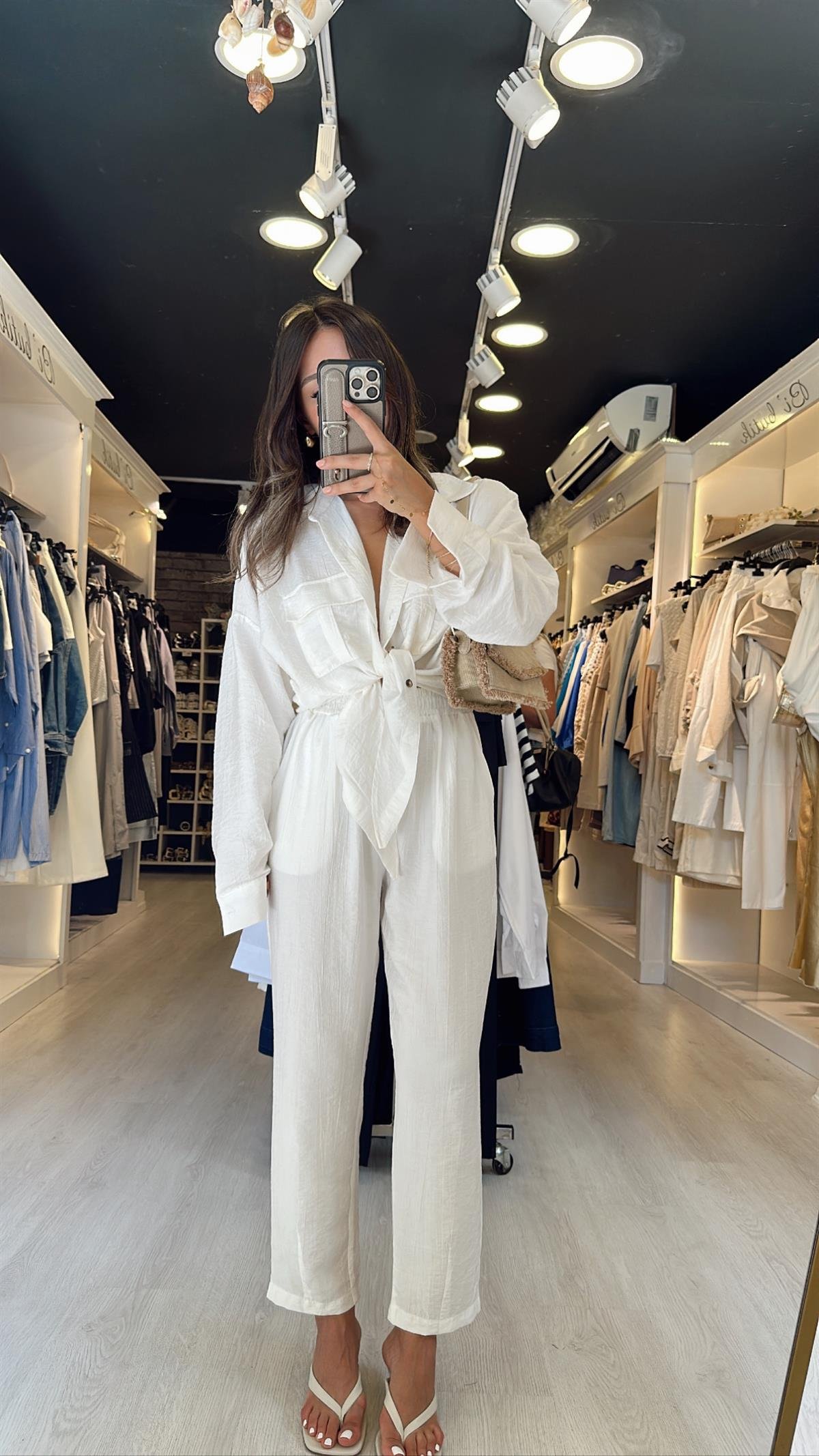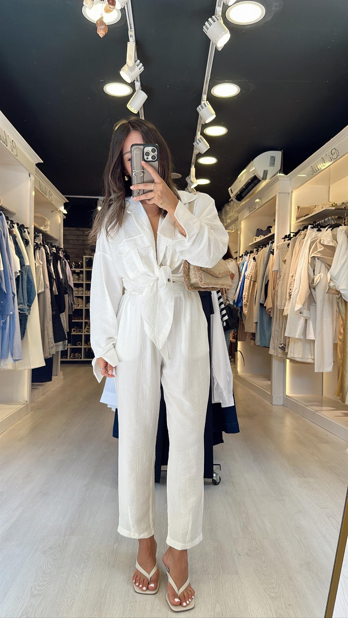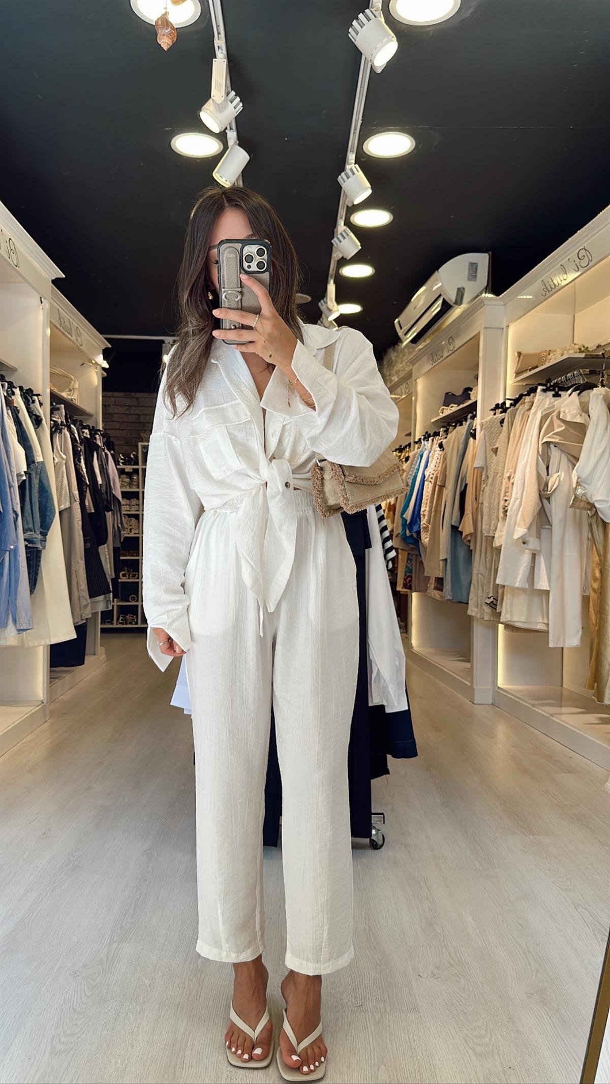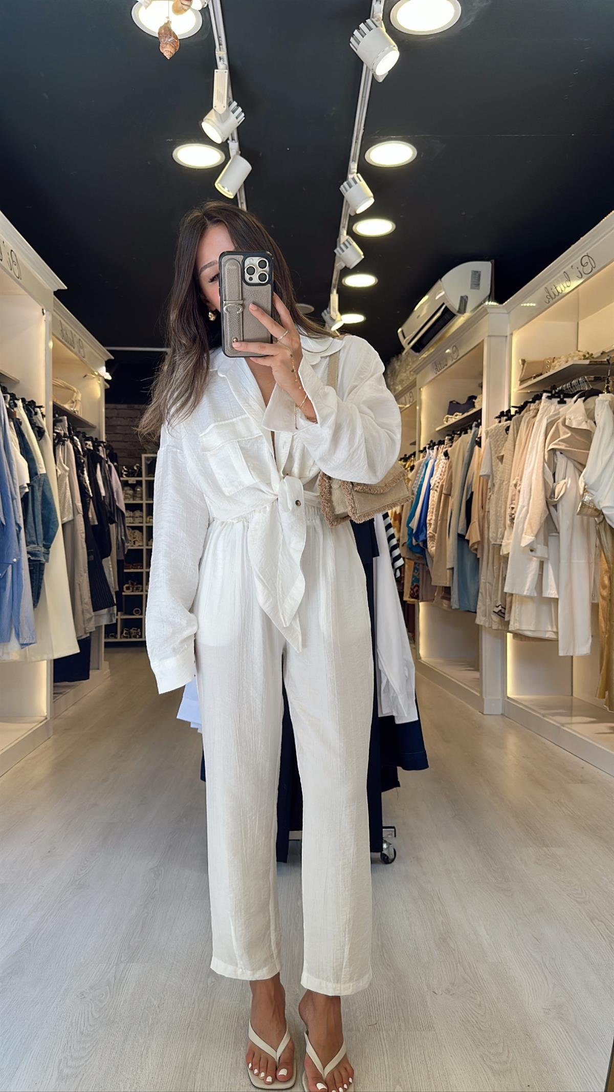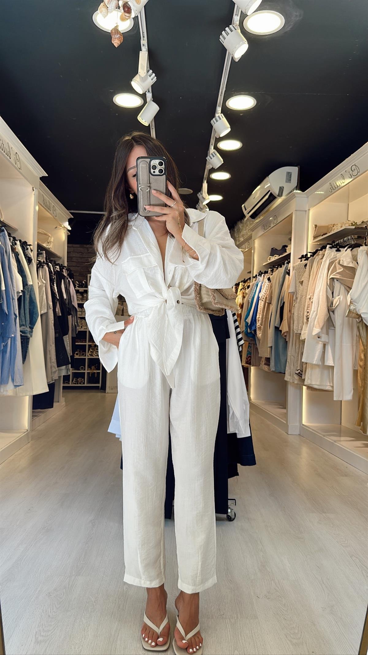 Beyaz Paça Pens Detaylı Pantolon (Bpan915)