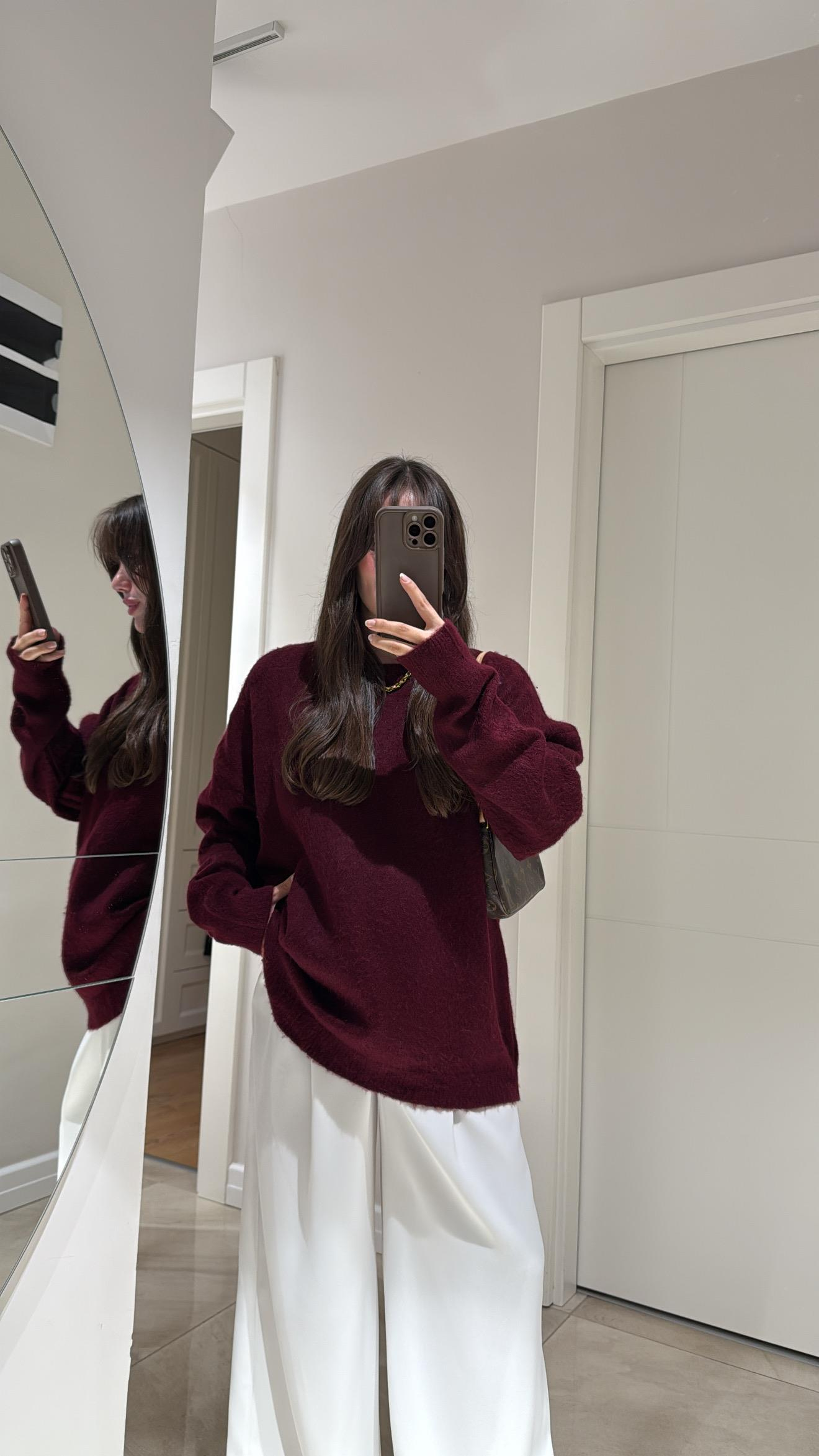 Bordo Bisiklet Yaka Marka Model Sakallı Kazak (Bkzk757)