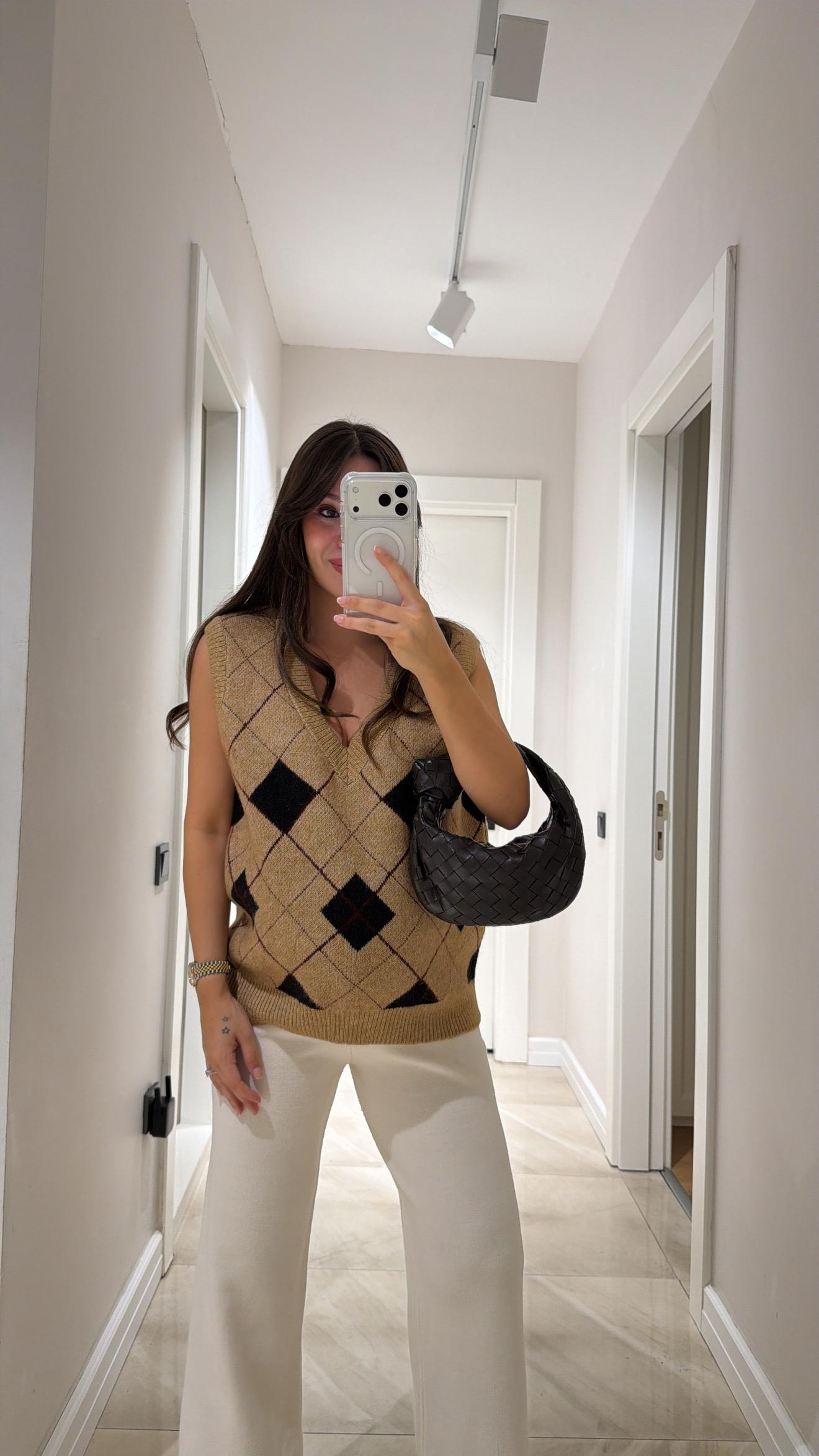 Camel Siyah Baklava Desen Marka Model Süveter (Bkzk843)