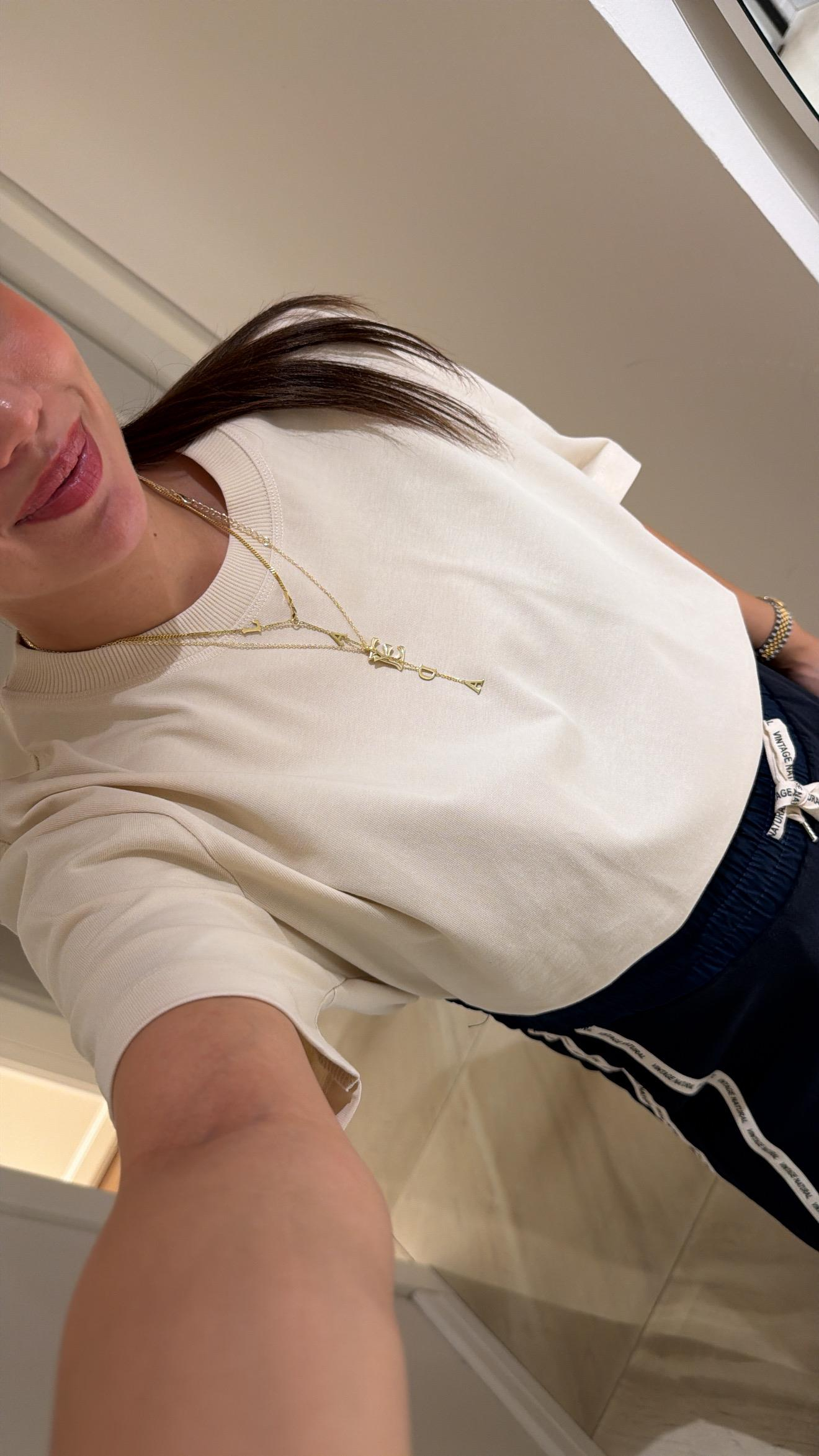Ekru Bisiklet Yaka Kısa Kol Tişört