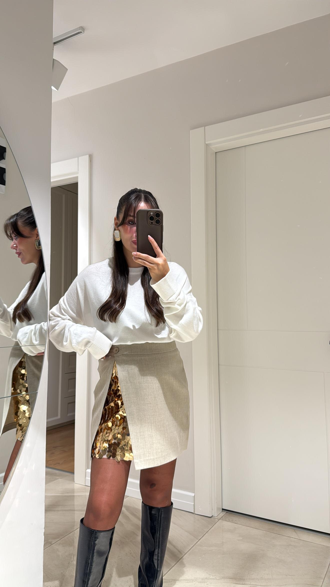 Taş Payet Detaylı Mini Etek Gold Kare Silver Küpe