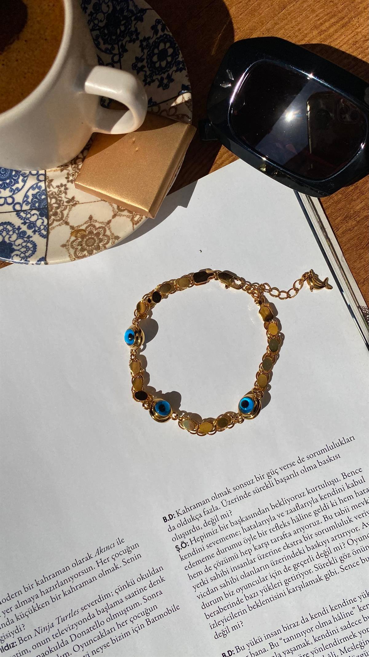 Gold Arpa Nazar Boncuklu Çelik Bileklik