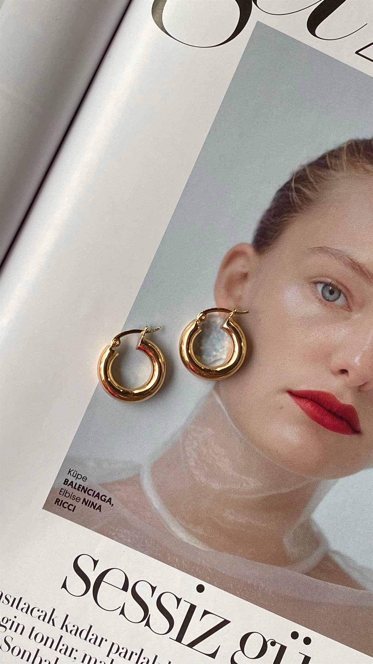 Gold Çelik Boru Halka Küpe (1cm) (Bkp13)