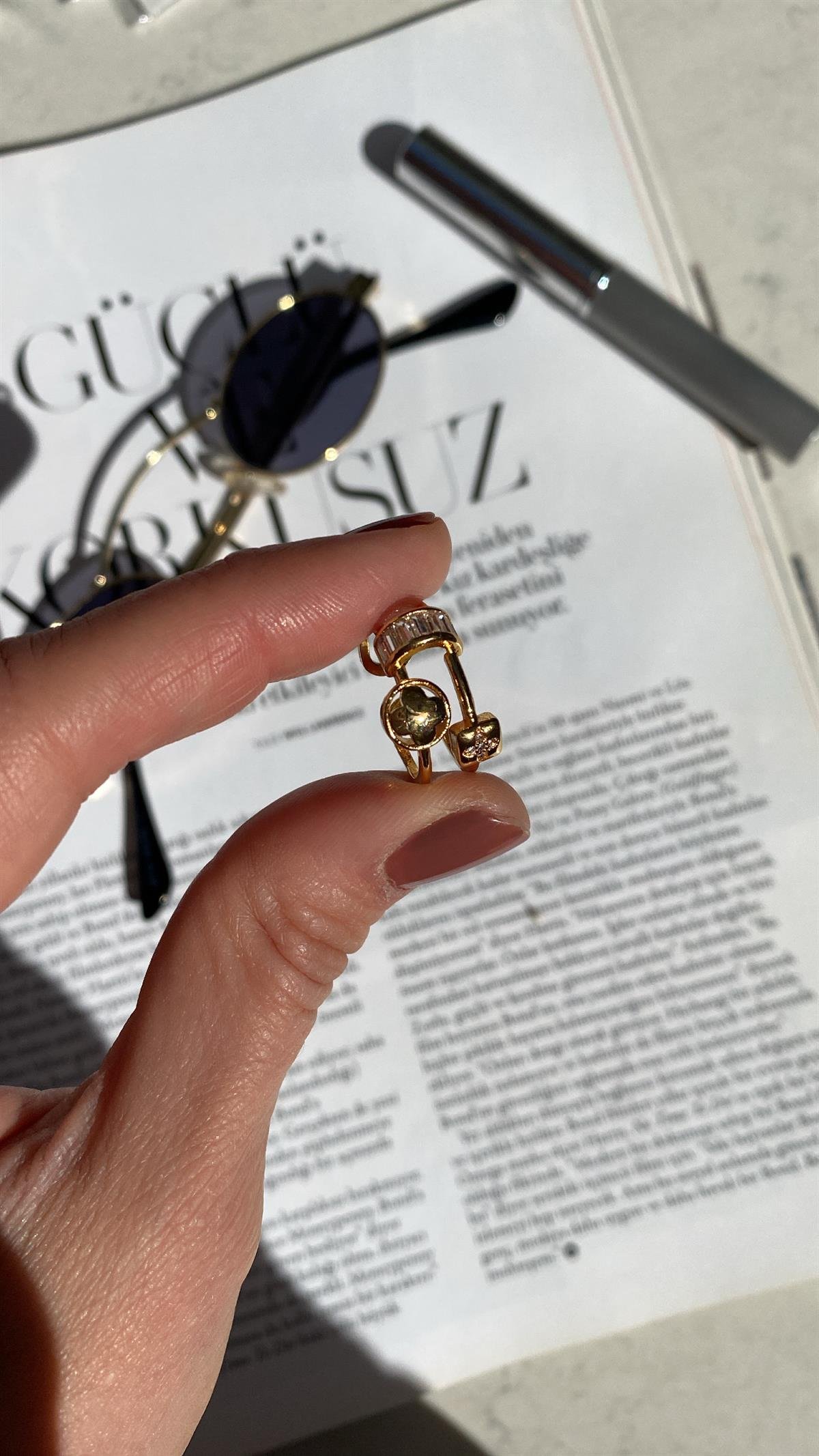 Gold Çelik Taşlı Yonca Yüzük (Byzk04)