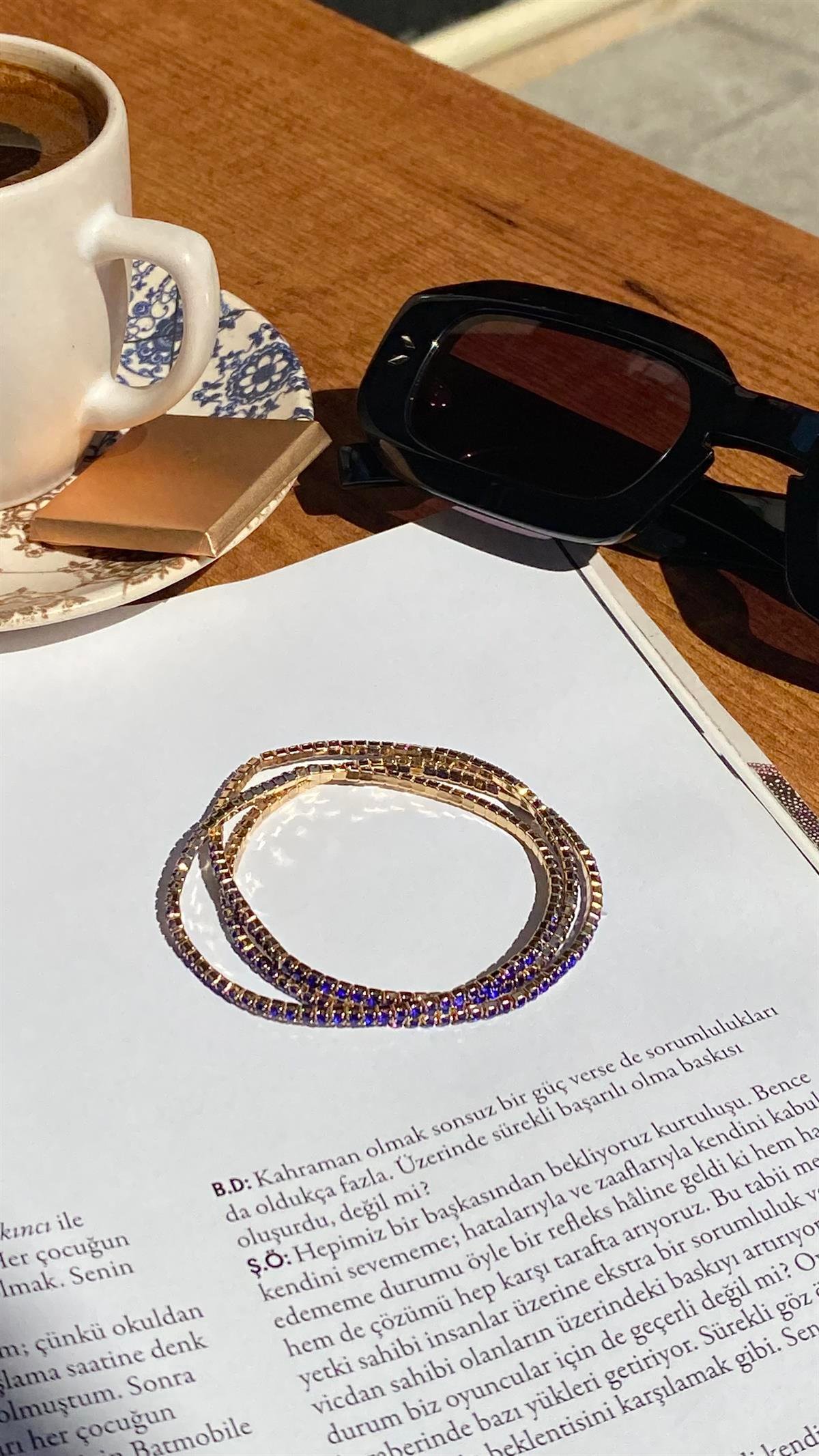 Gold Mavi Taşlı 3lü Lastilkli Bileklik