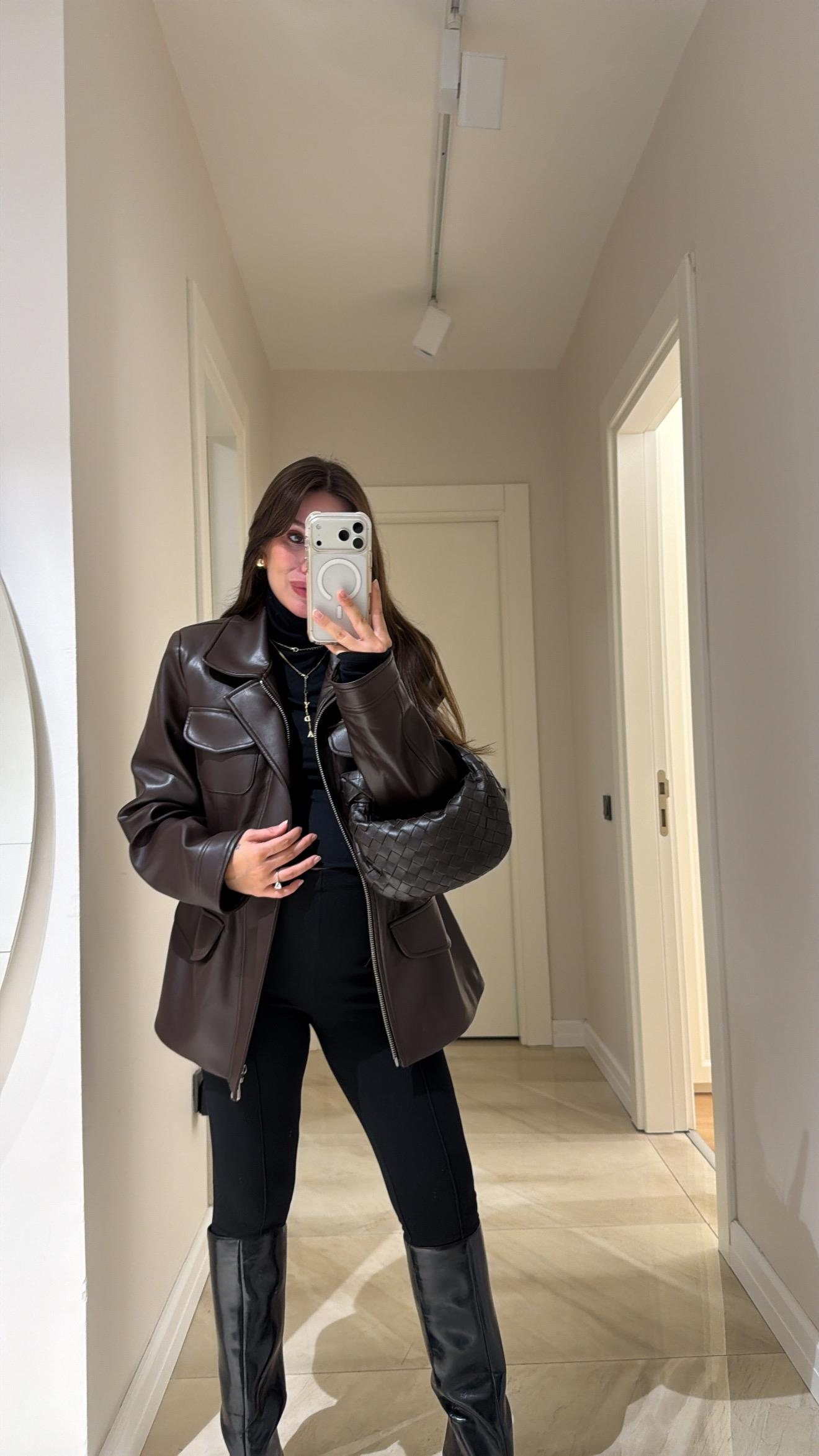 Kahve Beli Lastikli Ravi Deri Ceket (Bckt560)