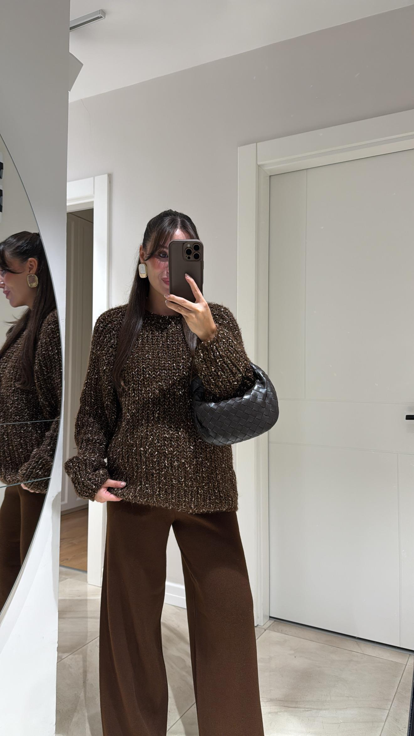 Acı Kahve Triko Pantolon Gold Kare Silver Küpe