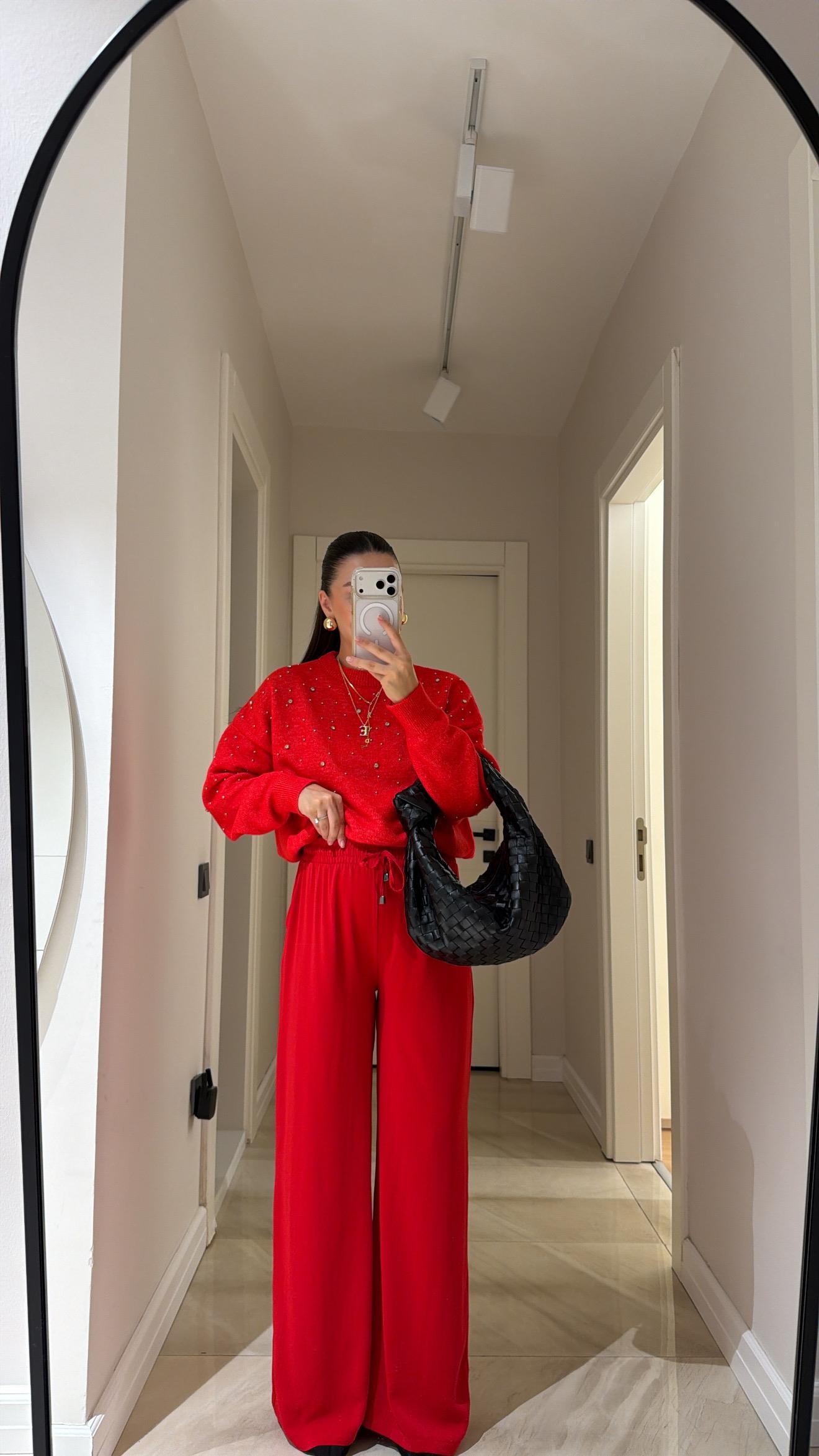 Kırmızı Bol Paça Tensel Pantolon (Bpan1150)