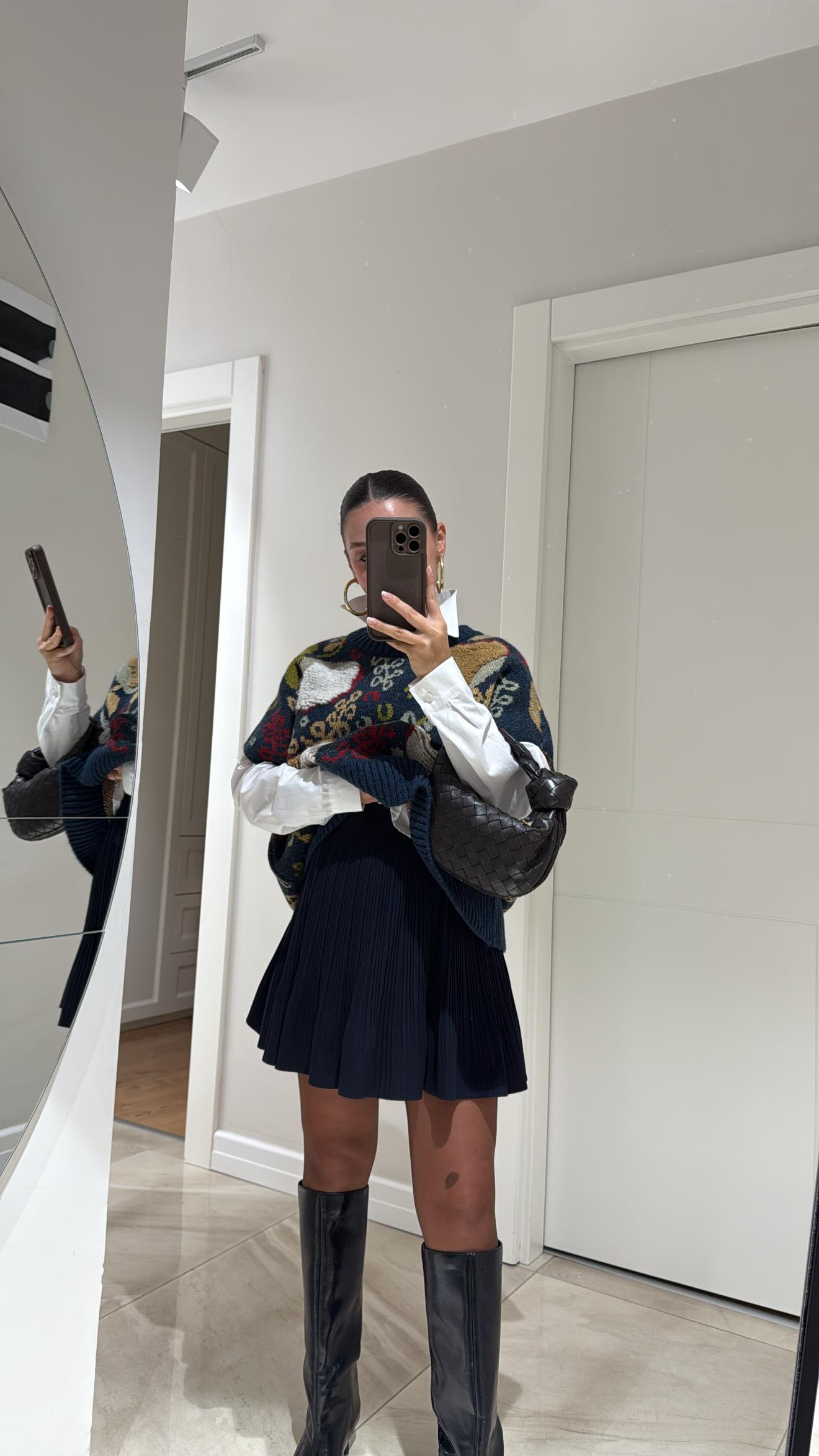 Lacivert Beli Lastikli Pileli Mini Etek (Betk315)