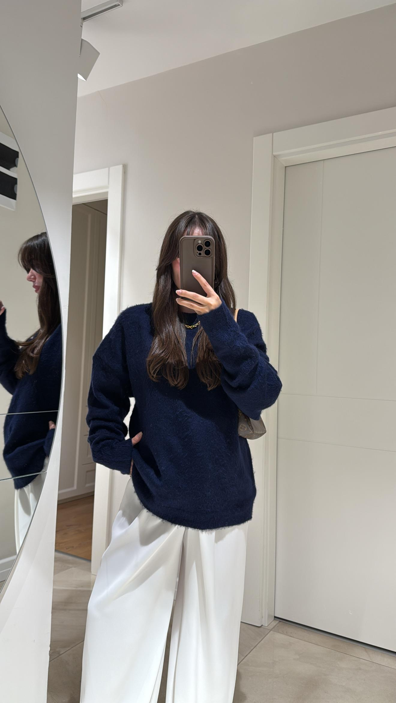 Lacivert Bisiklet Yaka Marka Model Sakallı Kazak
