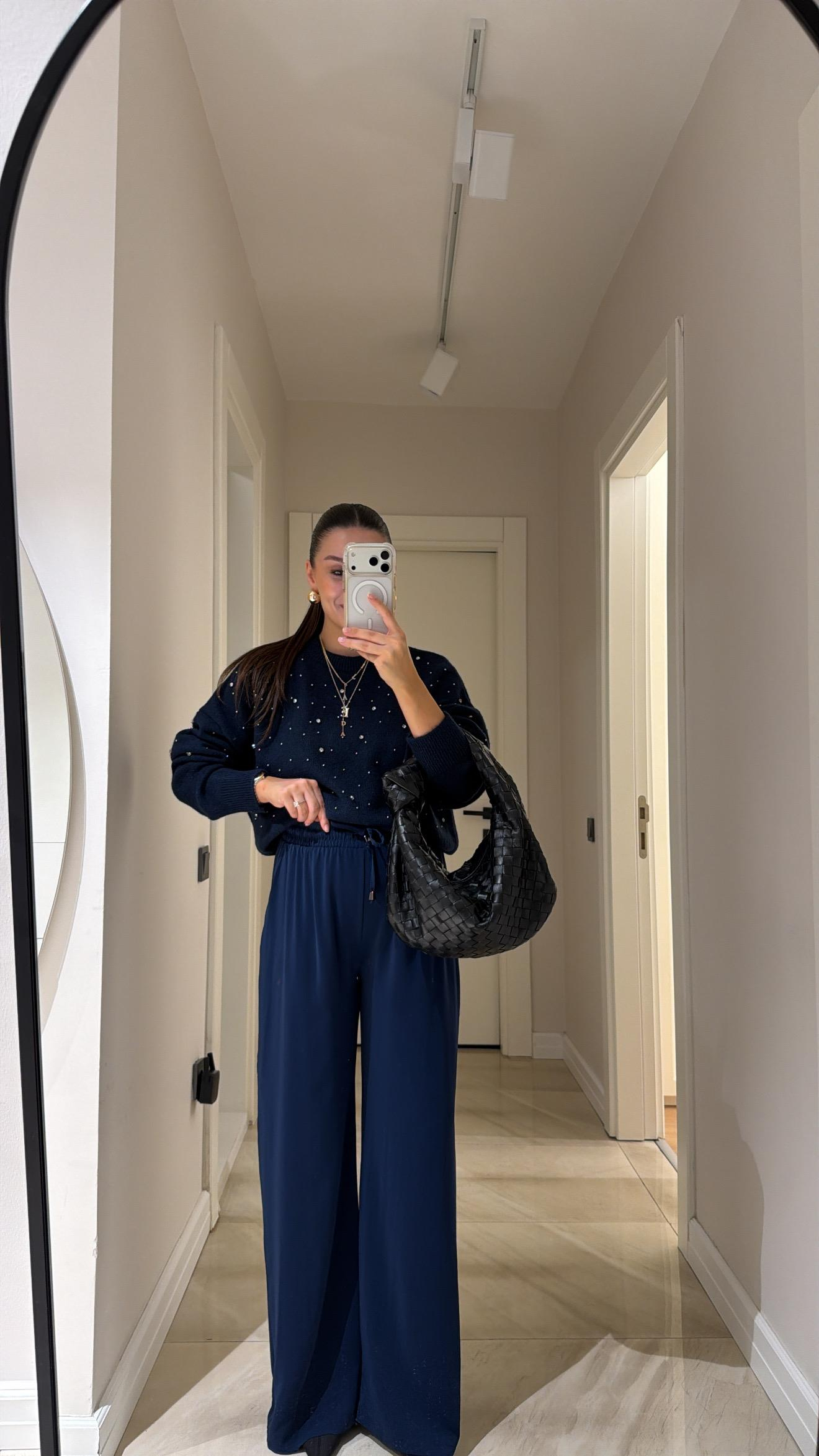 Lacivert Bol Paça Tensel Pantolon