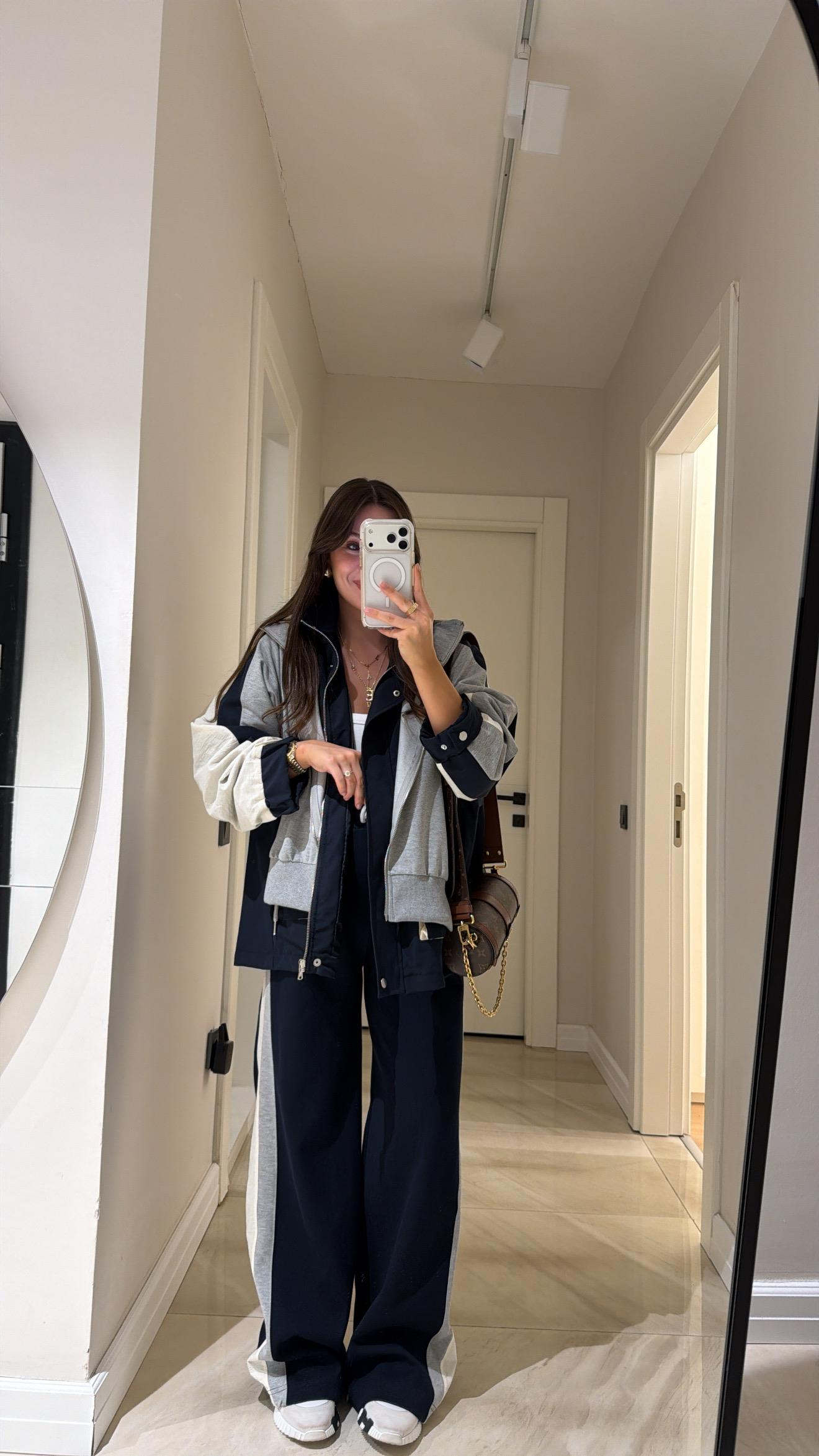Lacivert Gri Kapüşonlu Garnili Takım (Btkm1014)