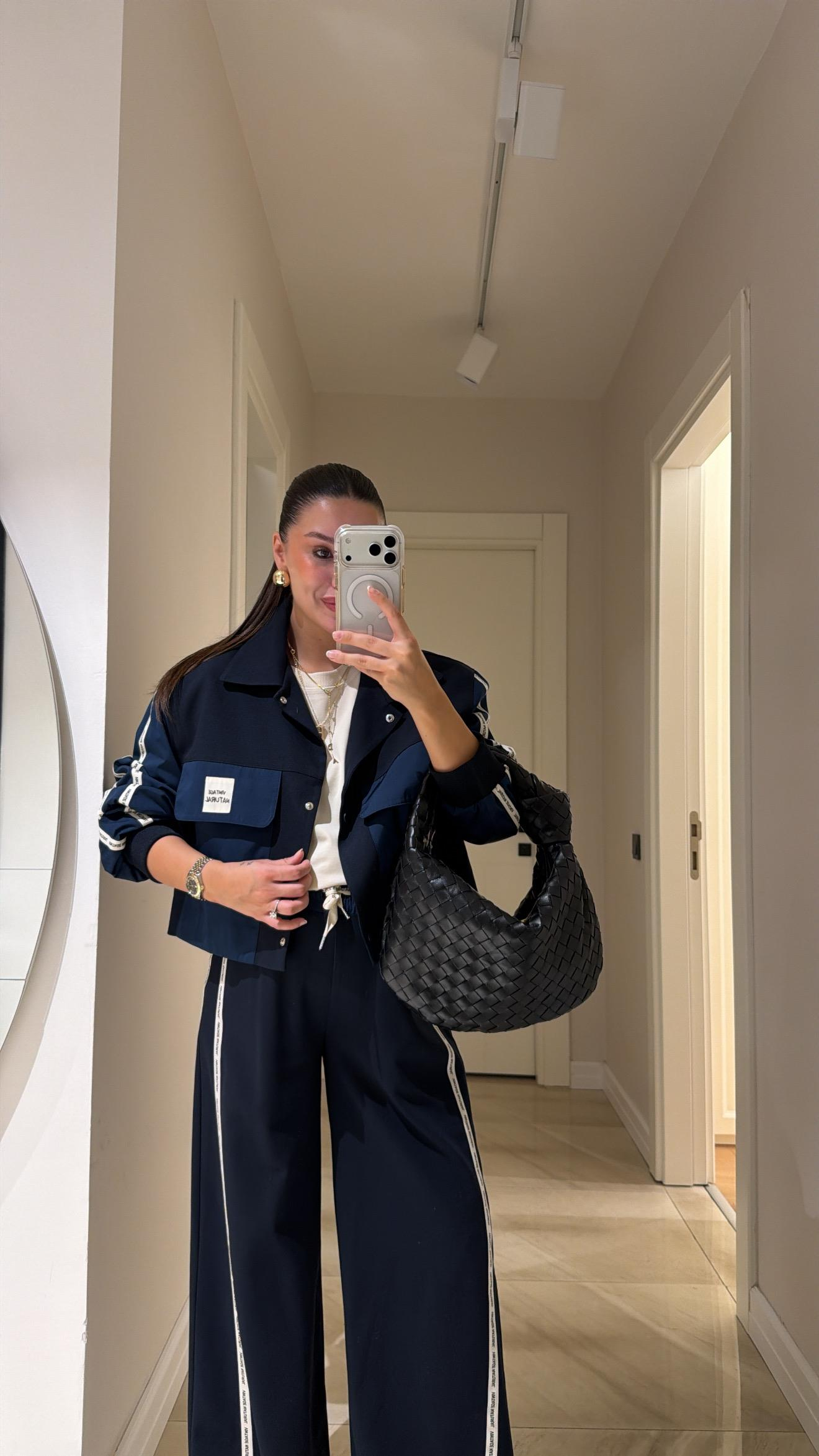Lacivert Paraşüt Kol Detaylı Garnili Ceket