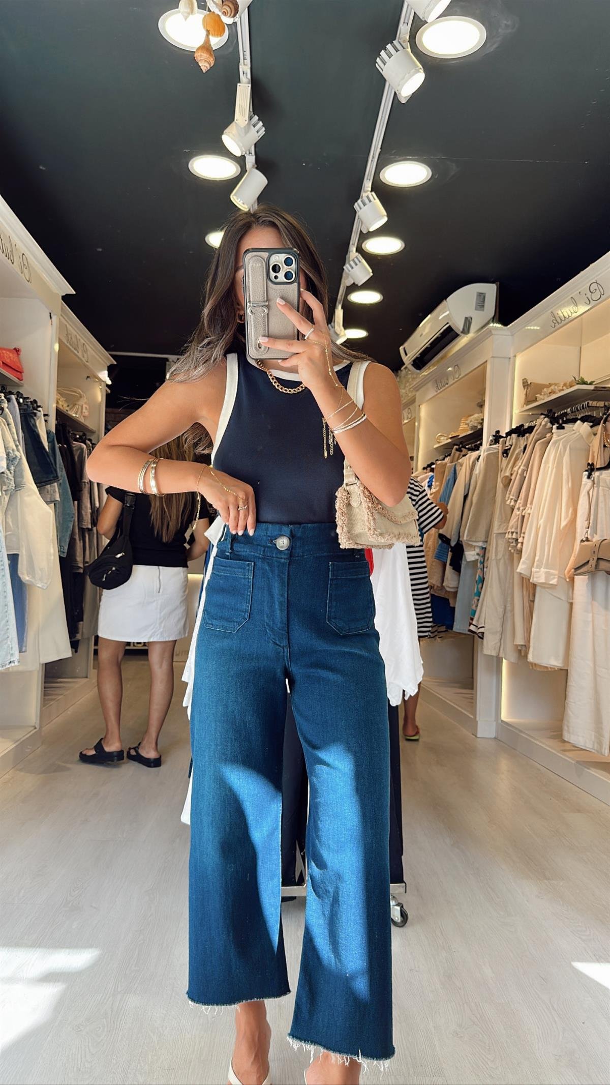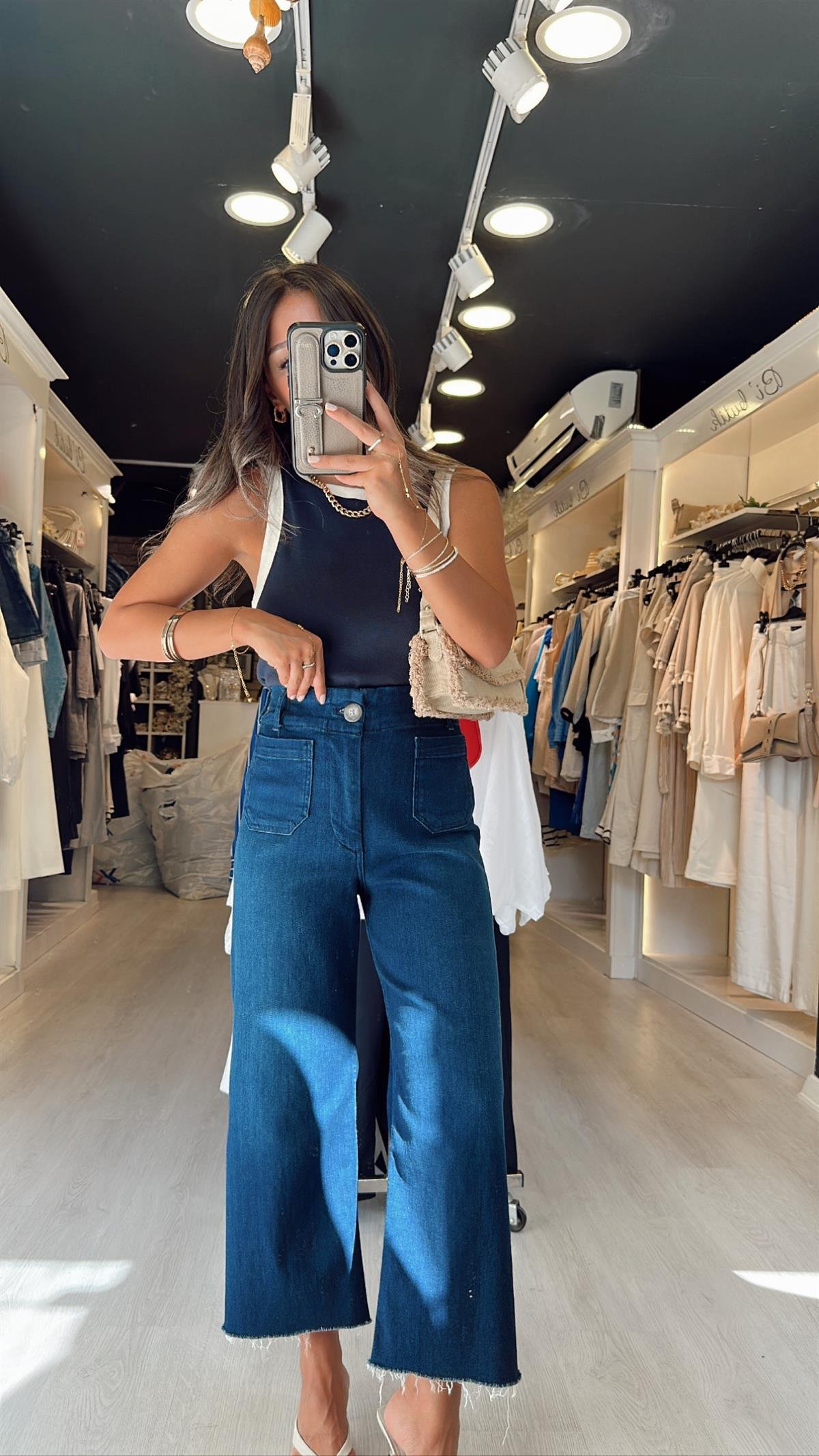 Mavi Ön Cep Detaylı Midi Boy Jean Pantolon