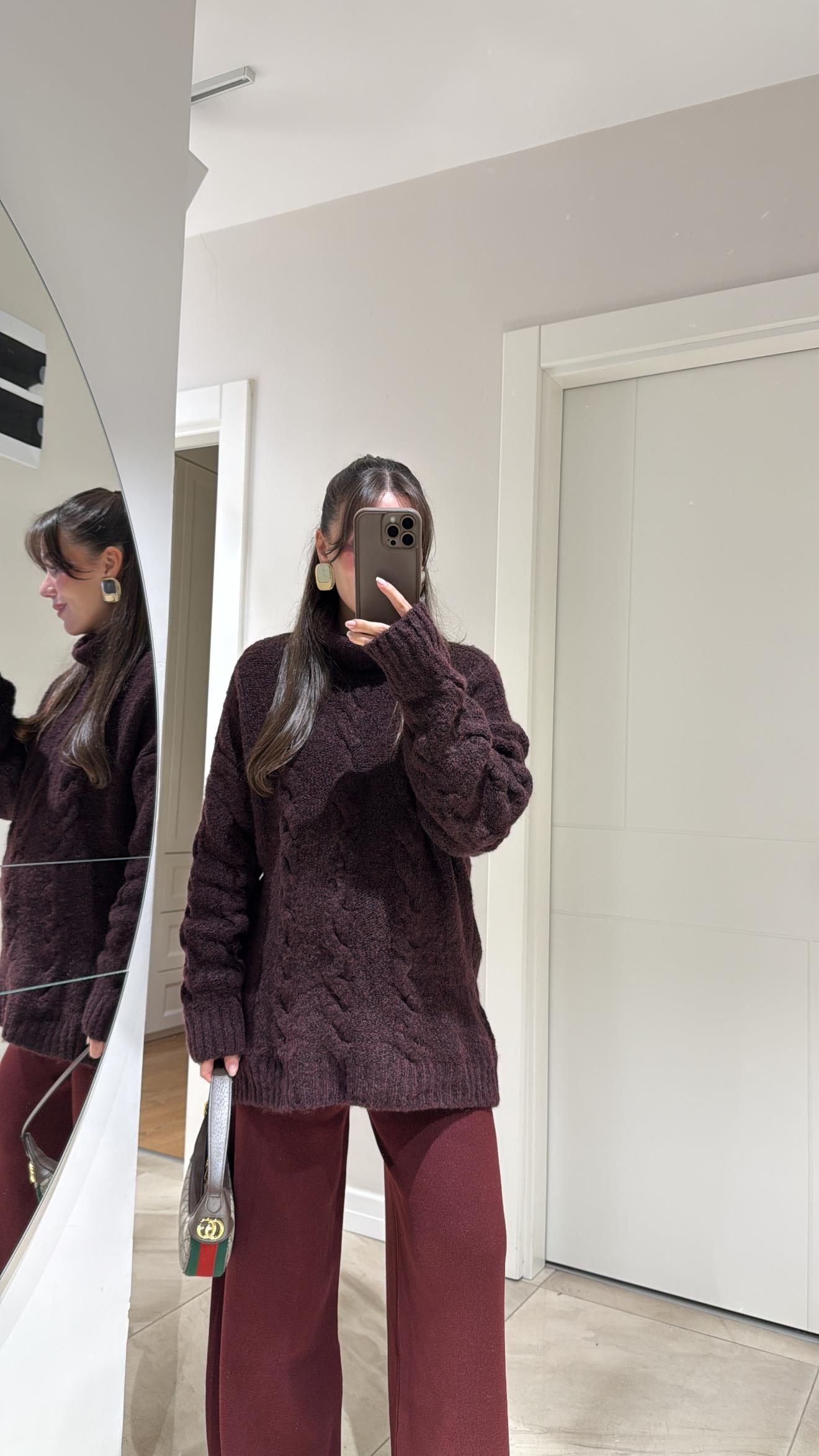 Mürdüm Balıkçı Yaka Selanik Örgülü Marka Model Kazak