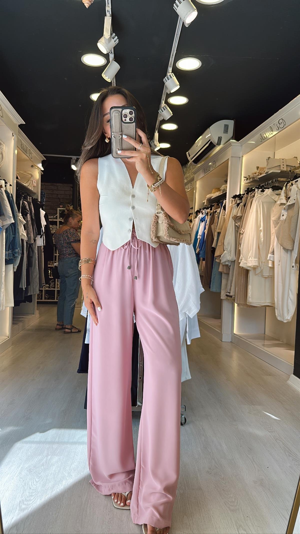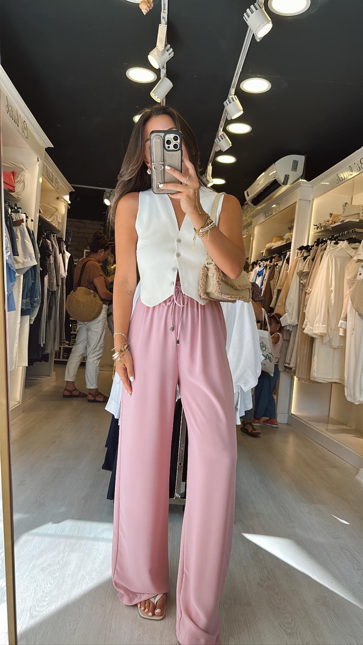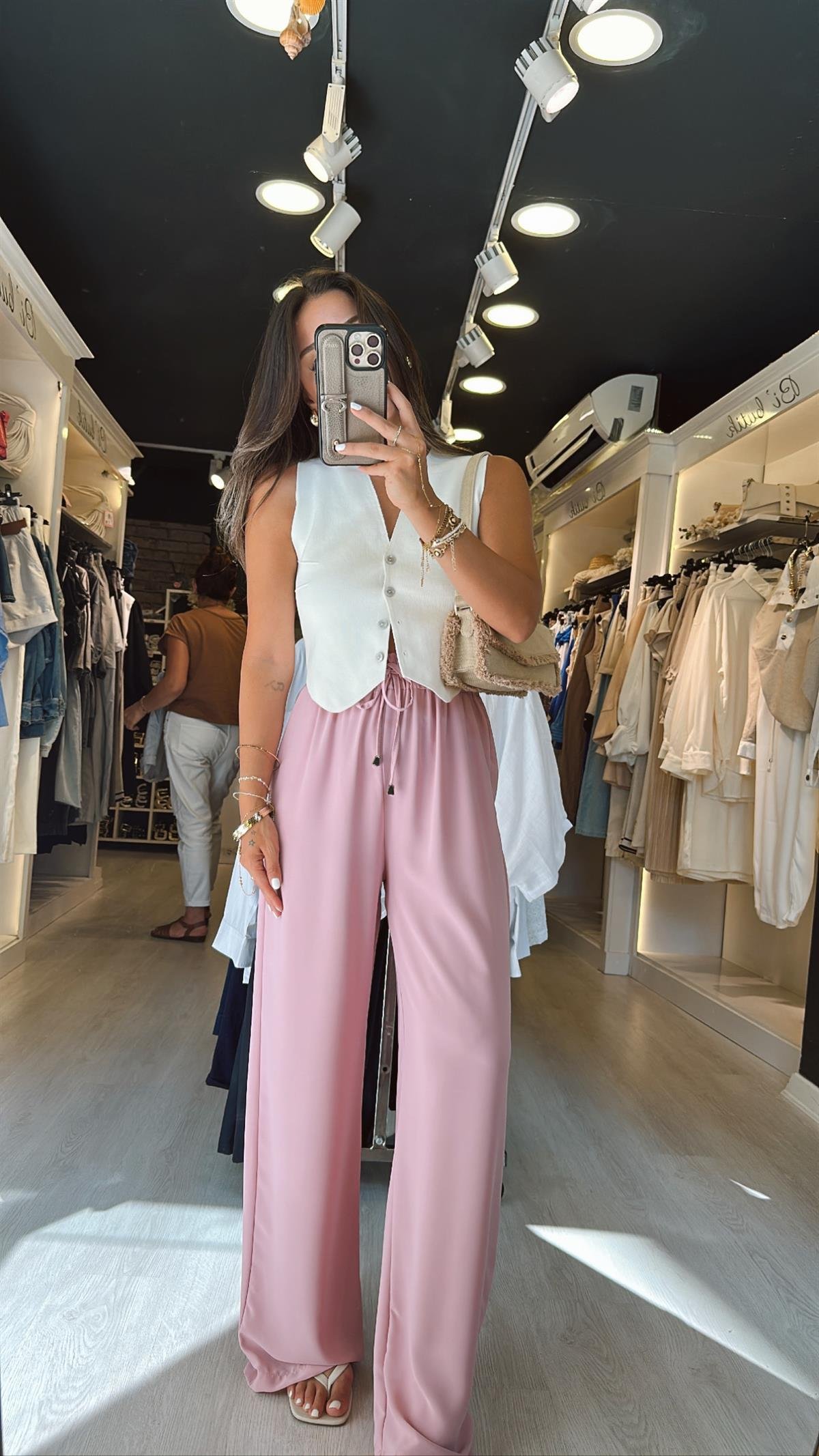 Pembe Bel Lastikli Saten Bol Pantolon (Bpan914)