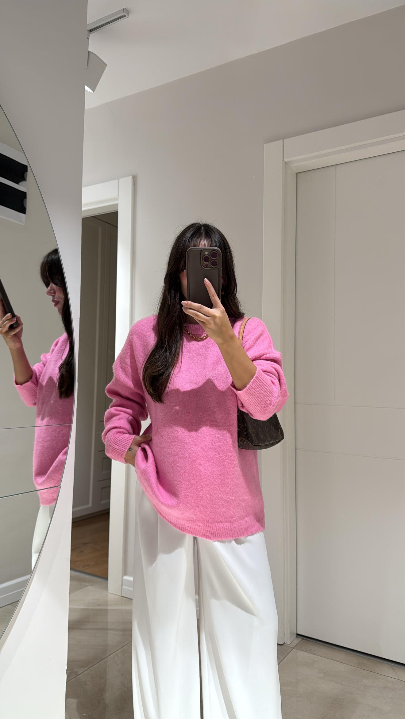 Pembe Bisiklet Yaka Marka Model Sakallı Kazak