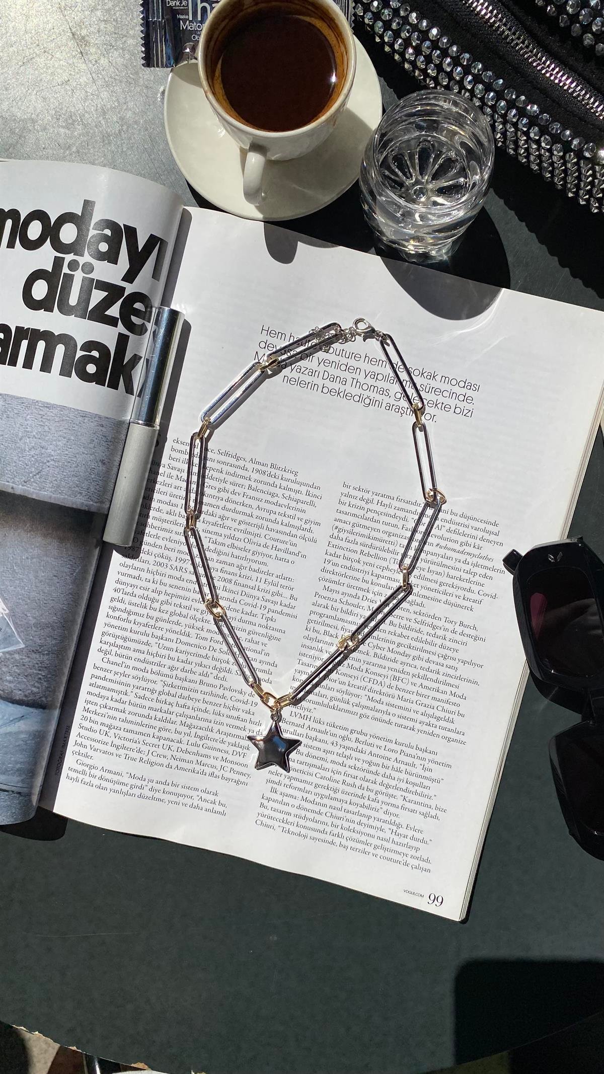 Silver Gold Yıldızlı Kolye