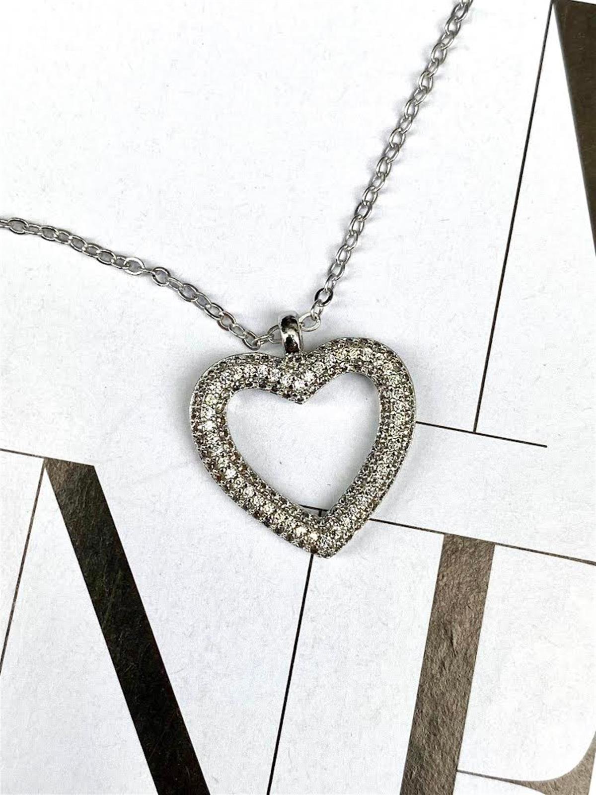 Silver Zirkon Taşlı Kalp Kolye (Bkl18)