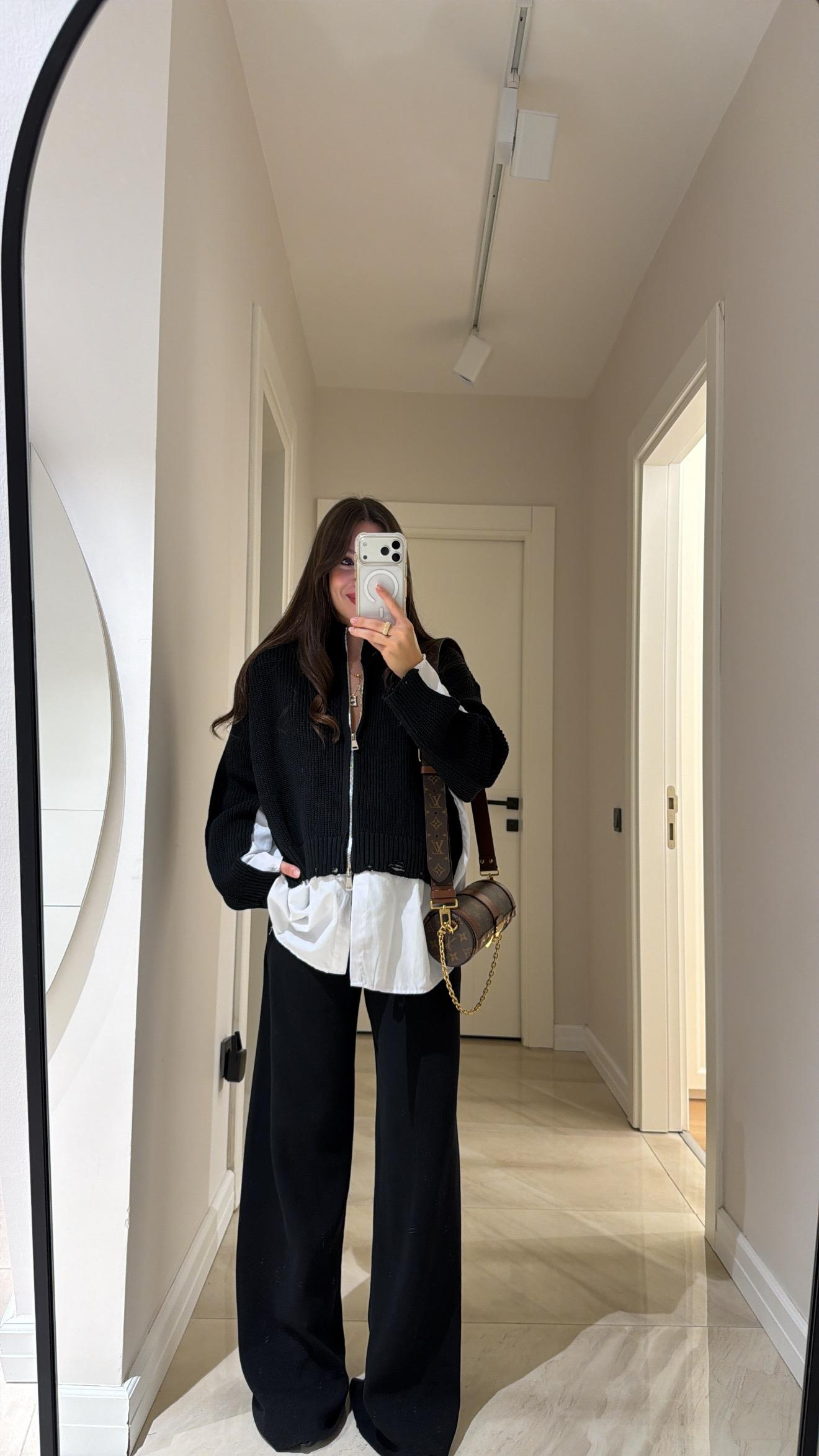 Siyah Gömlek Detaylı Triko Pantolon Takım