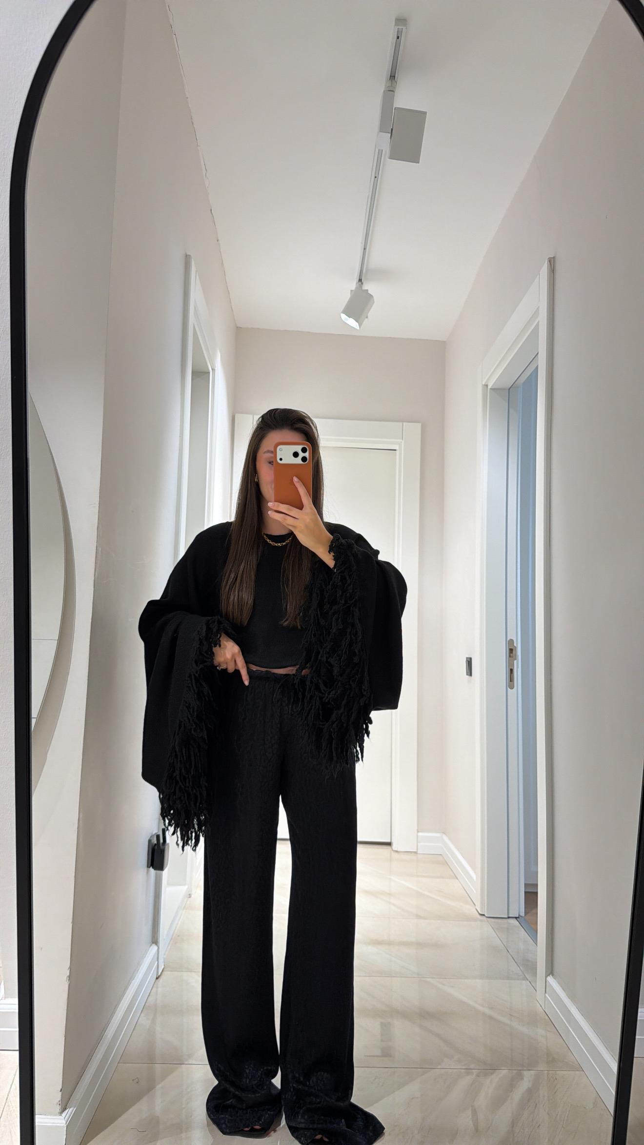 Antrasit Kol Püsküllü Triko Kazak Gri Kol Püsküllü Triko Kazak Siyah Kol Püsküllü Triko Kazak