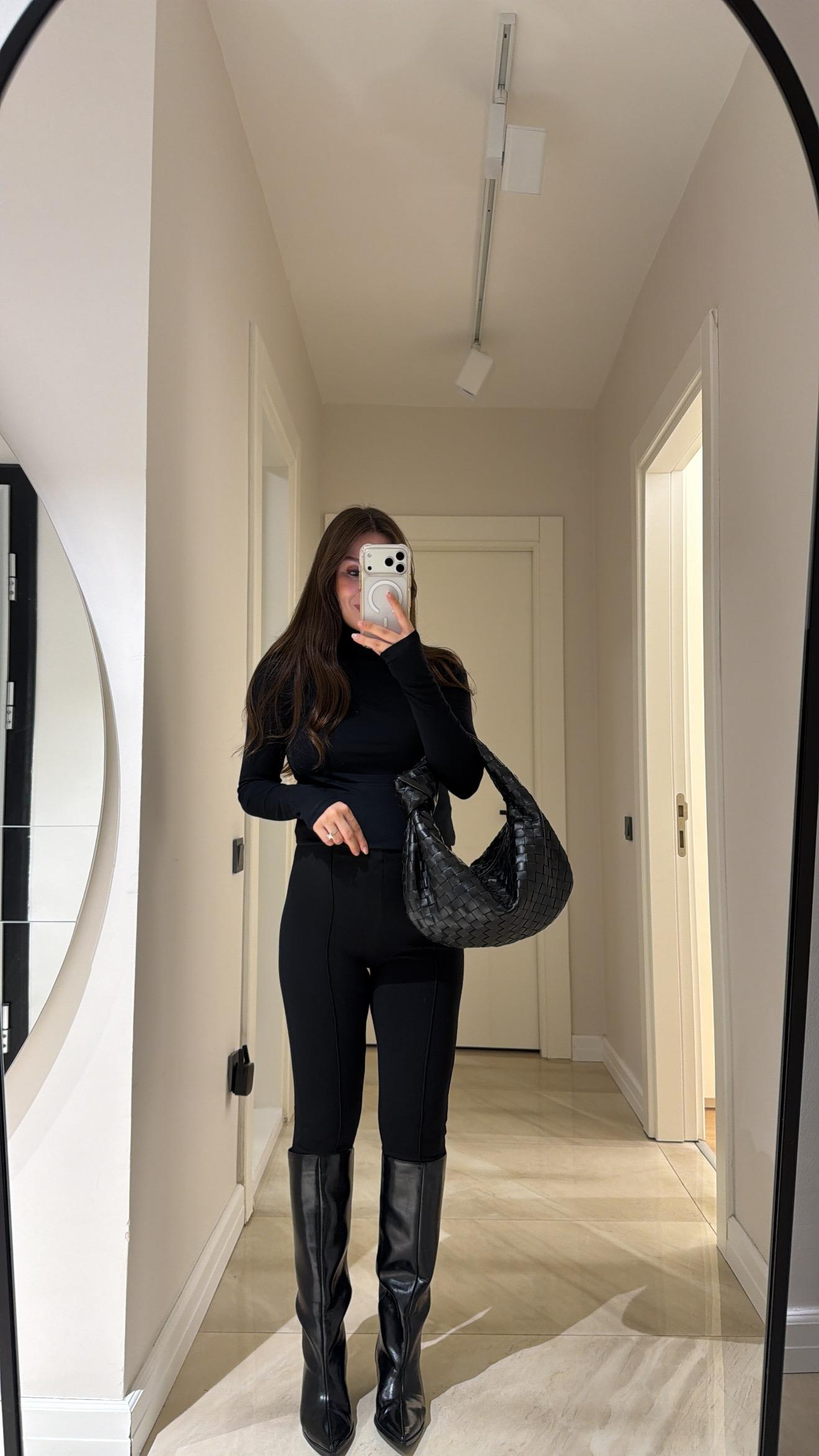Siyah Ön Dikiş Detaylı Lastikli Ravi Tayt