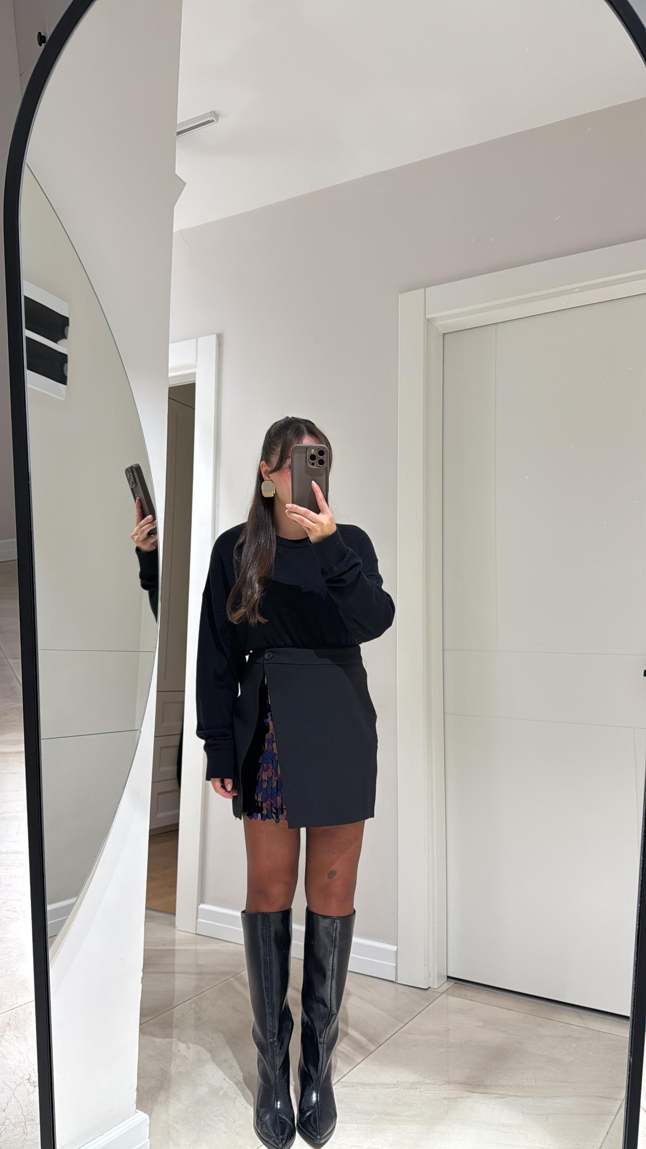 Siyah Payet Detaylı Mini Etek (Betk338)