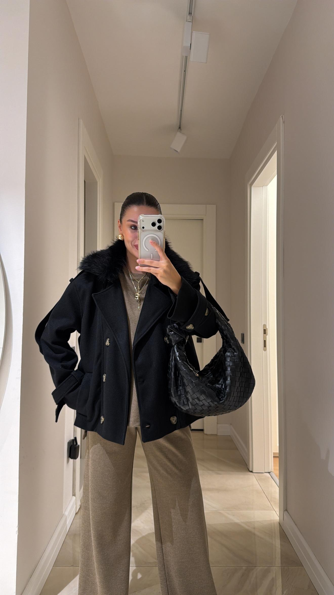 Siyah Yaka Kürk Detaylı Kaşe Ceket