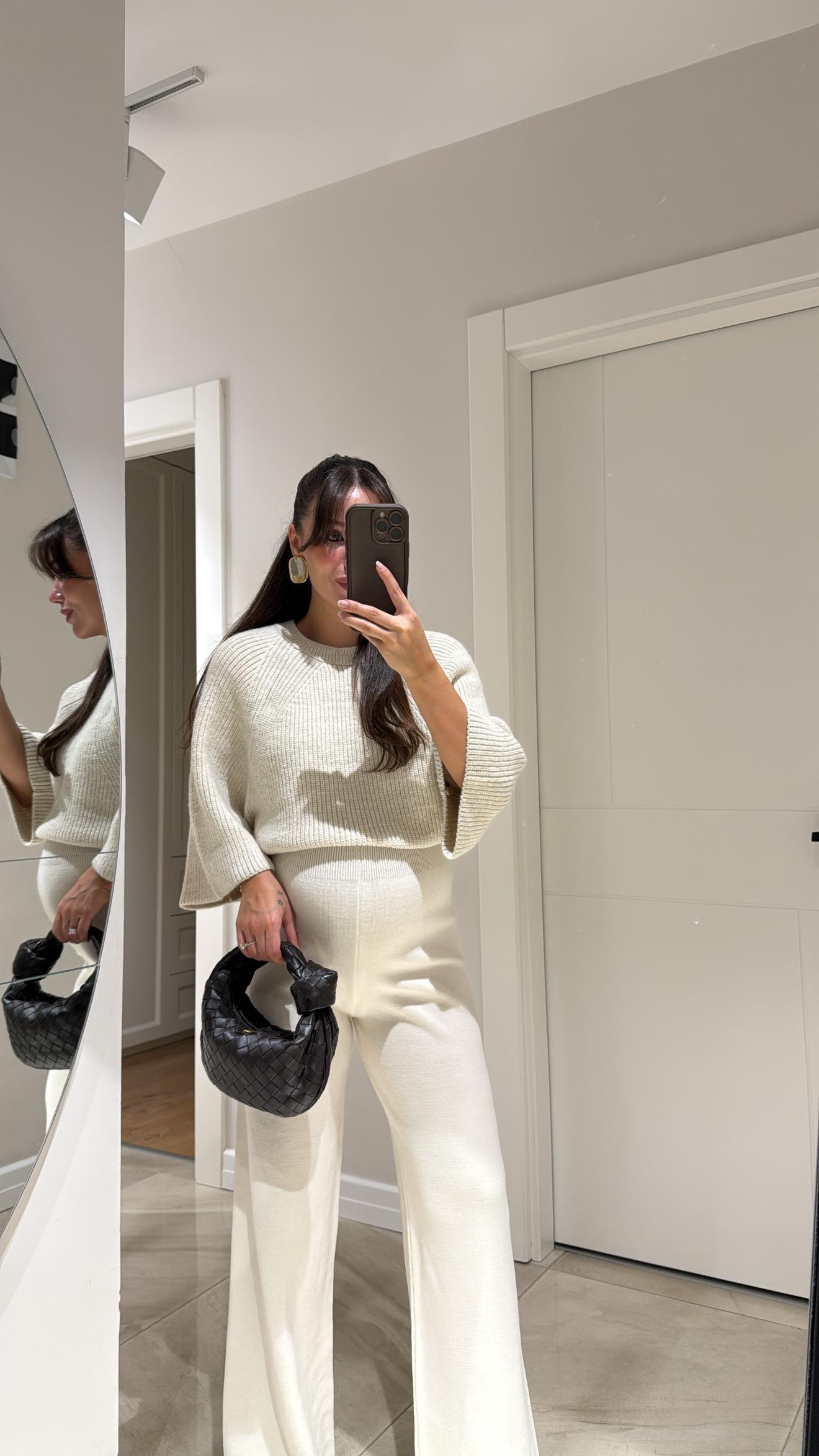 Ekru Triko Pantolon Gold Kare Silver Küpe