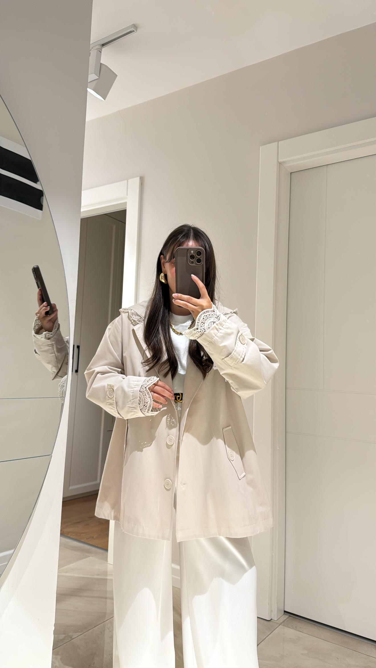Taş Dantel Detaylı Düğmeli Ceket (Bckt523)