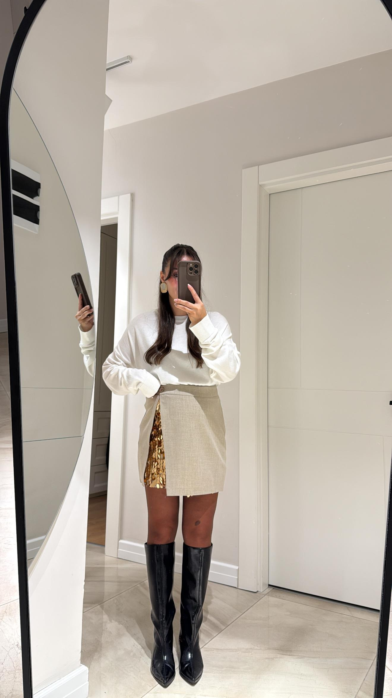 Taş Payet Detaylı Mini Etek