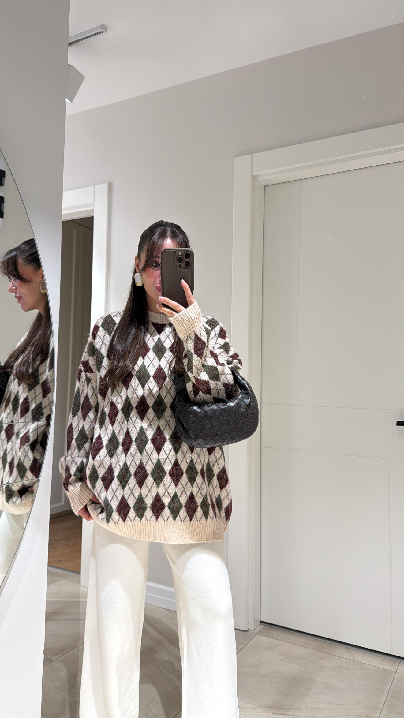 Vanilya Bordo Baklava Desen Oversize Kazak