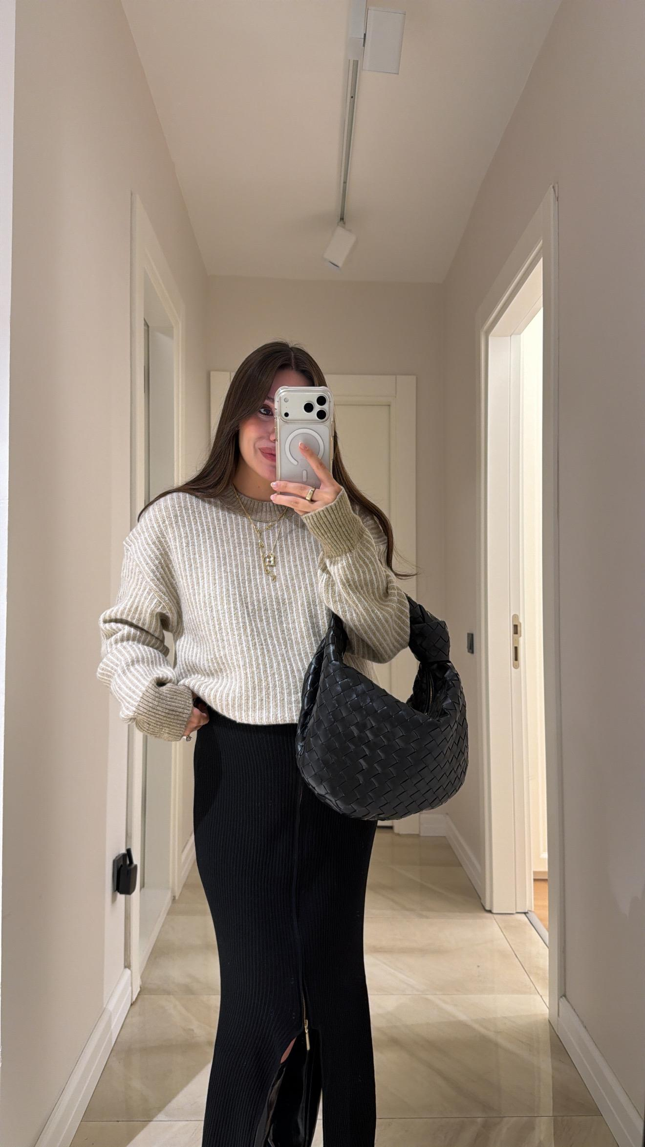 Vizon Ekru Dik Çizgili Marka Model Kazak