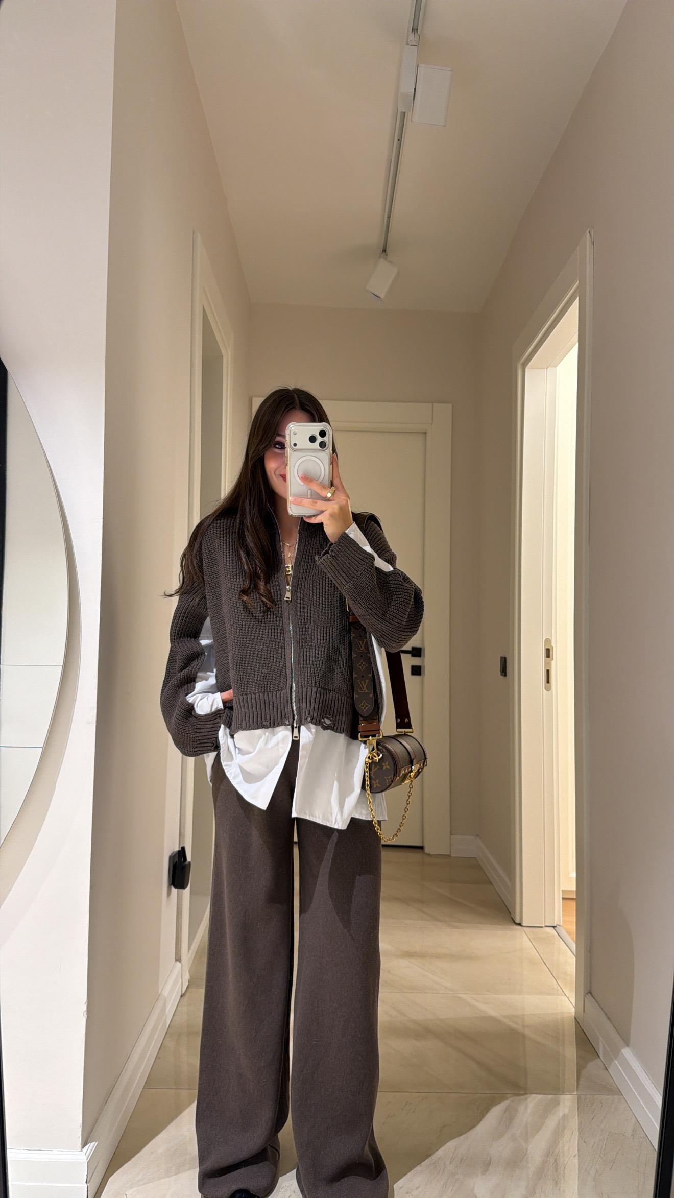 Vizon Gömlek Detaylı Triko Pantolon Takım