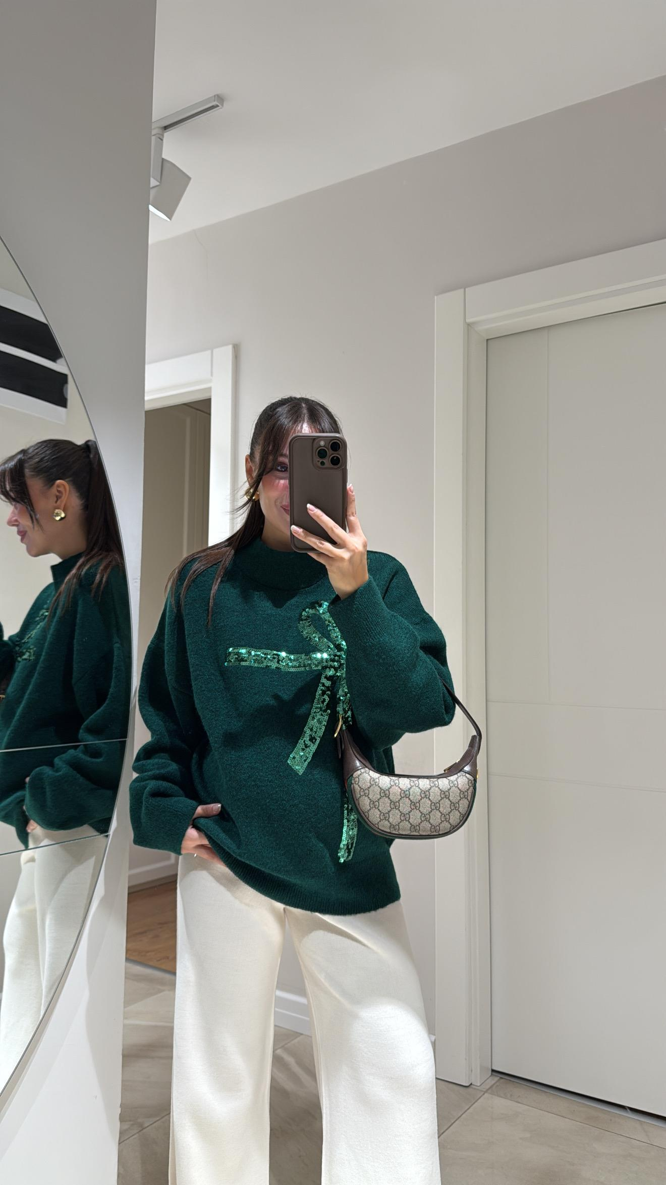 Yeşil Pul Detaylı Marka Model Kazak (Bkzk824)