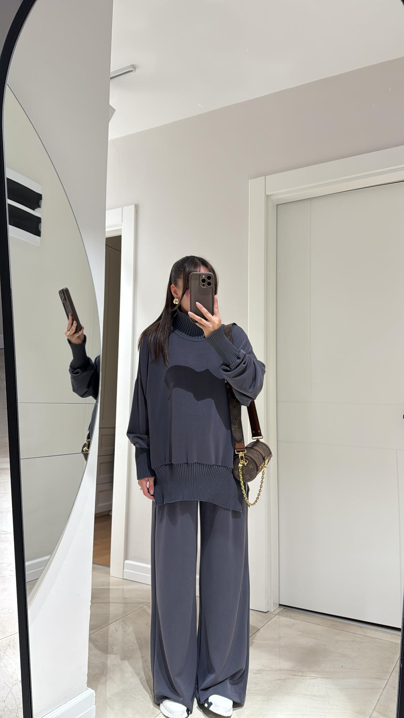 Gri Balıkçı Yaka Yan Fermuarlı Modal Takım