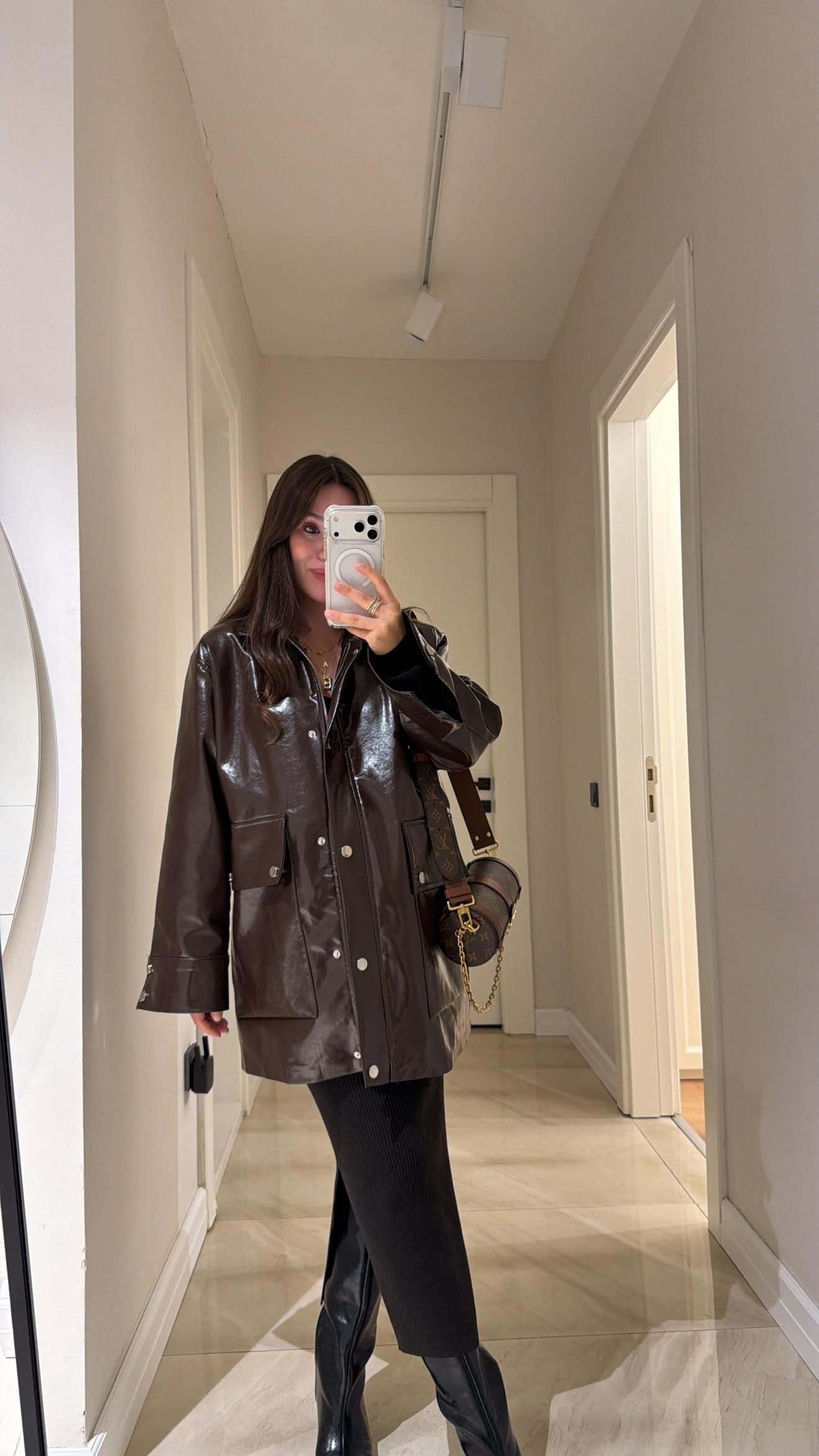 Kahve Geniş Cepli Parlak Deri Ceket (Bckt587)