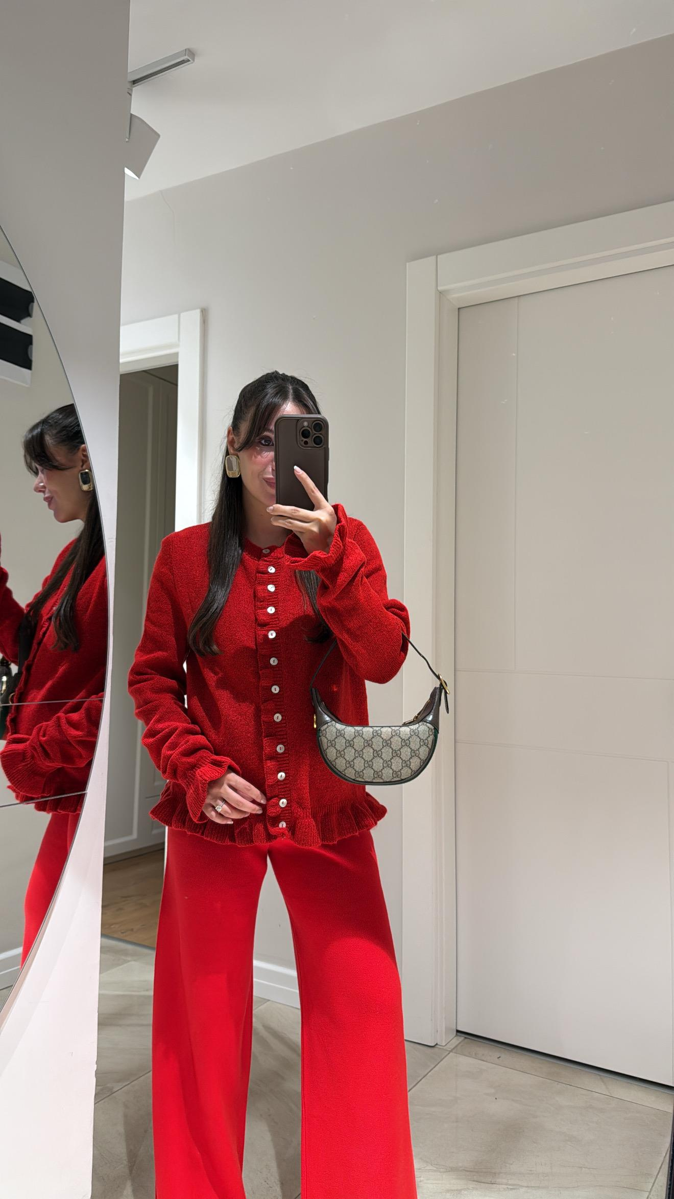 Kırmızı Fırfırlı Triko Hırka (Bhrk307)